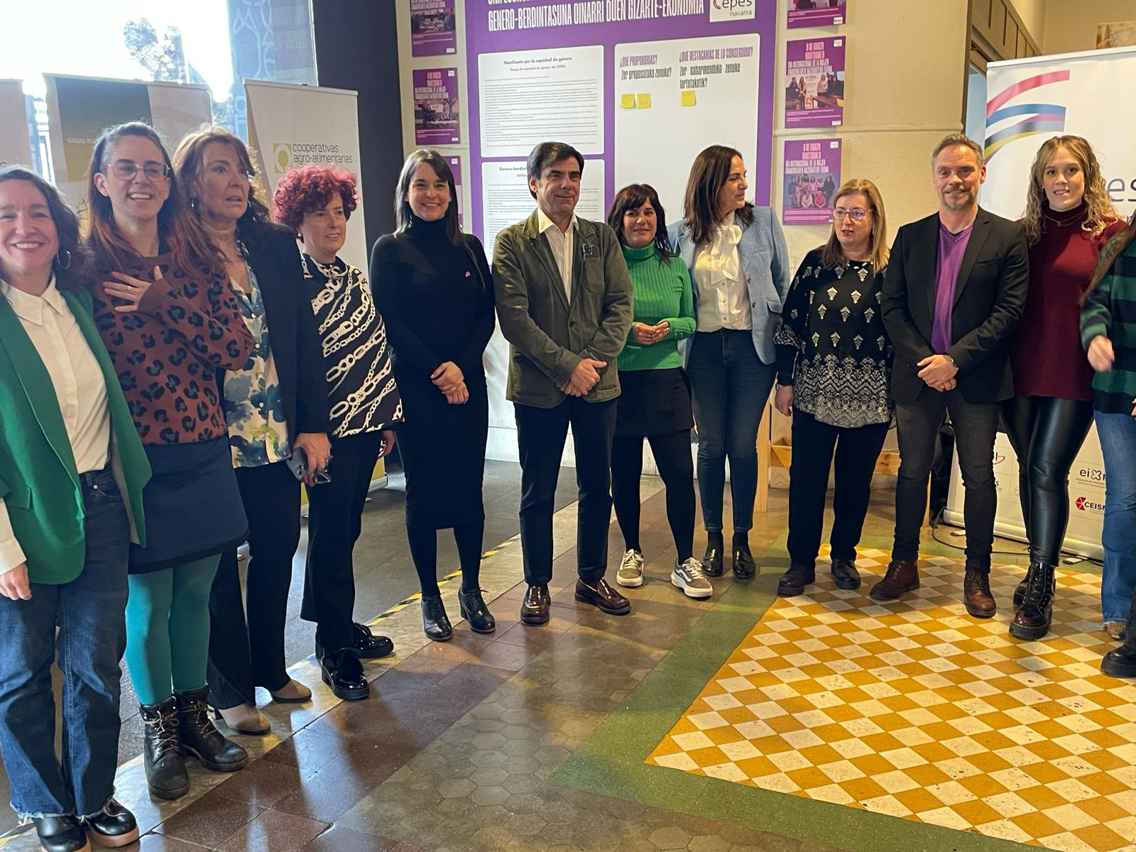 El acto, bajo el nombre de ‘Equidad de género en la economía social’, ha servido para que agentes de la economía social en Navarra mostrasen su compromiso con la igualdad a través de la lectura de un manifiesto y la firma del mismo, que ha contado con la vicepresidenta Alfaro como testigo. Con dicho manifiesto, CEPES Navarra se compromete a “promover la igualdad de oportunidades en todos los niveles de nuestra economía; fomentar la participación activa de las mujeres en los puestos de toma de decisiones; trabajar por una cultura organización inclusiva; impulsar políticas y prácticas que faciliten la conciliación; o unir fuerzas con otras organizaciones”, entre otras cuestiones.