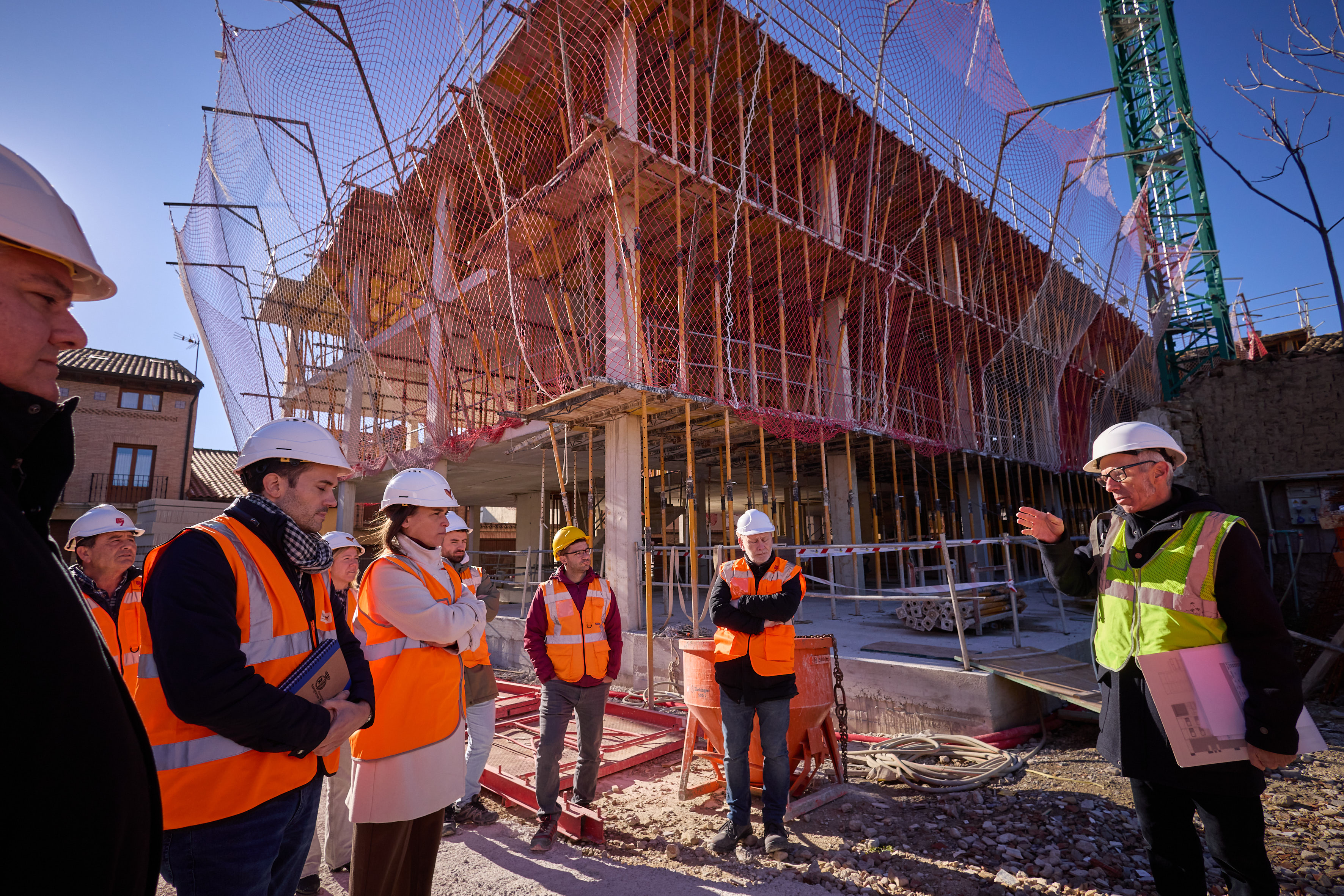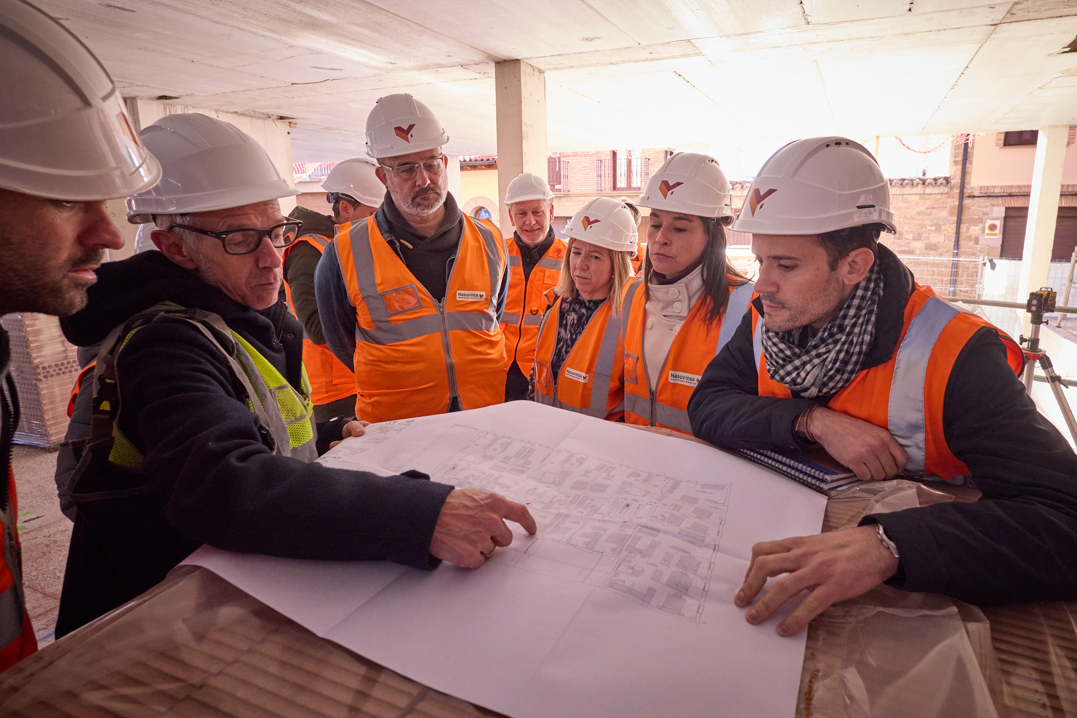 La vicepresidenta tercera y consejera de Vivienda, Juventud y Políticas Migratorias del Gobierno de Navarra, Begoña Alfaro, acompañada por el director gerente de Nasuvinsa, Javier Burón, ha visitado hoy la promoción en ejecución de 20 viviendas de protección oficial en régimen de alquiler ubicada en el Casco Antiguo de Sangüesa / Zangoza, una actuación incluida en el programa foral EtxeOn Navarra, que refuerza el compromiso del Gobierno de Navarra con el acceso a una vivienda digna, eficiente y sostenible.