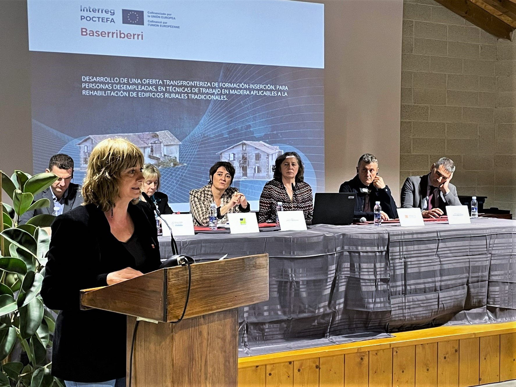 La también consejera de Memoria y Convivencia, Acción Exterior y Euskera ha participado, en Urdazubi/Urdax, en la presentación de esta iniciativa de inserción laboral centrada en el ámbito de la rehabilitación de caseríos y otros edificios de madera, que ha logrado una financiación de 1,1 millones de euros en la primera convocatoria del Programa INTERREG-POCTEFA, impulsado por la Unión Europea.
