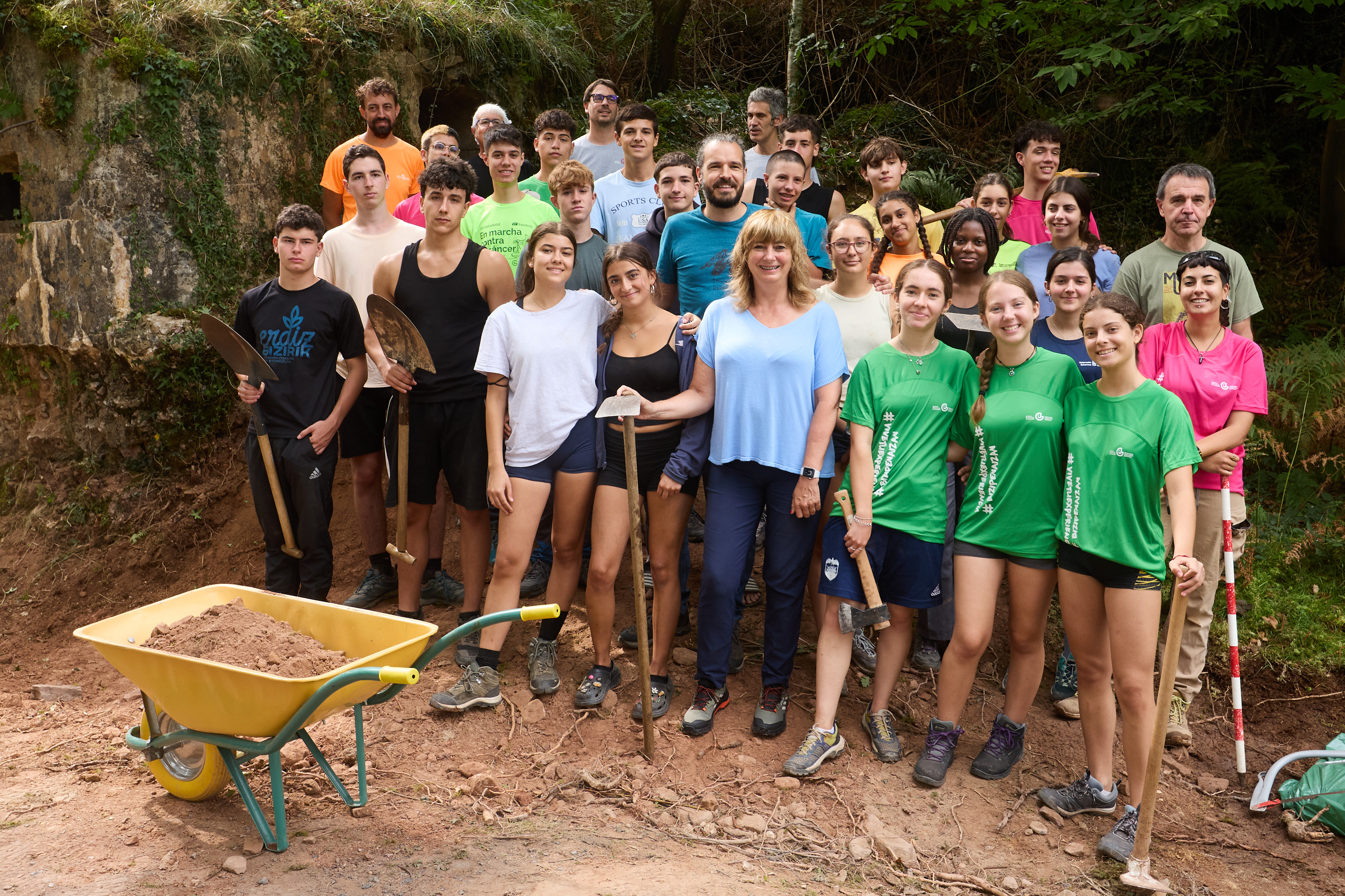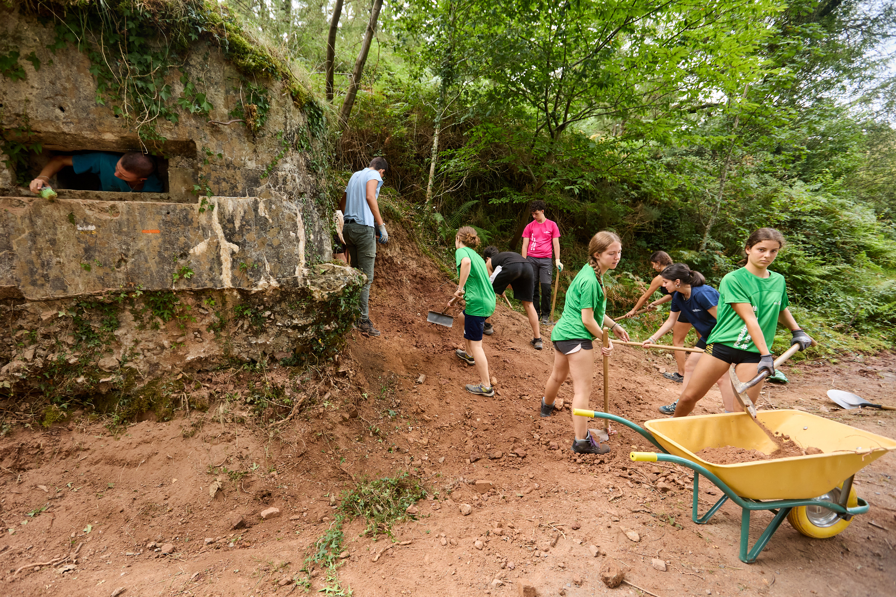El campo de voluntariado que se está desarrollado en Bera (Bortziriak / Cinco Villas) está dirigido a jóvenes de 15 a 17 años que provienen tanto de Navarra como de otras comunidades autónomas. Desde el 1 de agosto y hasta el próximo día 15, trabajan por recuperar una serie de búnkeres pertenecientes a varios centros de resistencia del franquismo desarrollado en el Pirineo navarro, concretamente, en el entorno del puerto de Ibardin y el monte Gartzin (406m), en la muga de Bera con la comarca de Xareta. Las y los 24 jóvenes participantes provienen de Andalucía, Aragón, Castilla y León, Catalunya, la Comunidad Autónoma Vasca, Madrid, Navarra y Comunidad Valenciana.