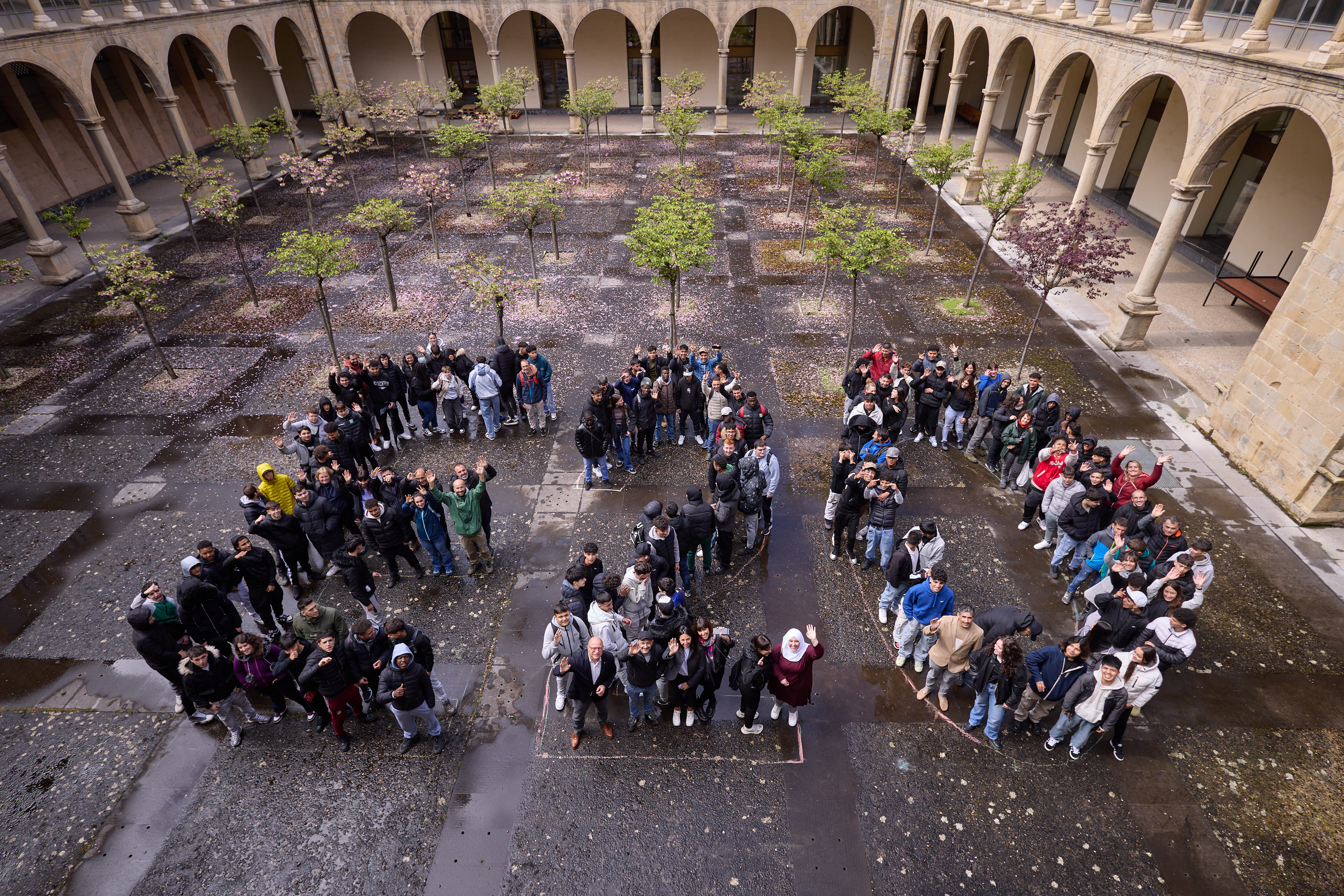 Dentro de la celebración a nivel estatal del denominado Mes de las Escuelas de Segunda Oportunidad, las cuatro escuelas navarras se han reunido en el claustro del Departamento de Educación. Una foto conjunta dibujando la silueta de las letras que definen a estas escuelas, E2O, ha vinculado a todos ellos en un acto en el que Fundación Ilundain Haritz-Berri (con dos unidades en las áreas de Pamplona / Iruña y Tudela), Asociación Lantxotegi (Berriozar) y Fundación Elkarte (Pamplona) han puesto de manifiesto el trabajo realizado por todas ellas que el curso pasado ofertaron formación a un total de 237 jóvenes. El alumnado de las cuatro escuelas ha representado visualmente así su compromiso, esfuerzo y transformación. Unos 90 alumnos y alumnas que han aprovechado esa segunda oportunidad gracias a unas iniciativas formativas que han sido reconocidas este mediodía en el Departamento de Educación.