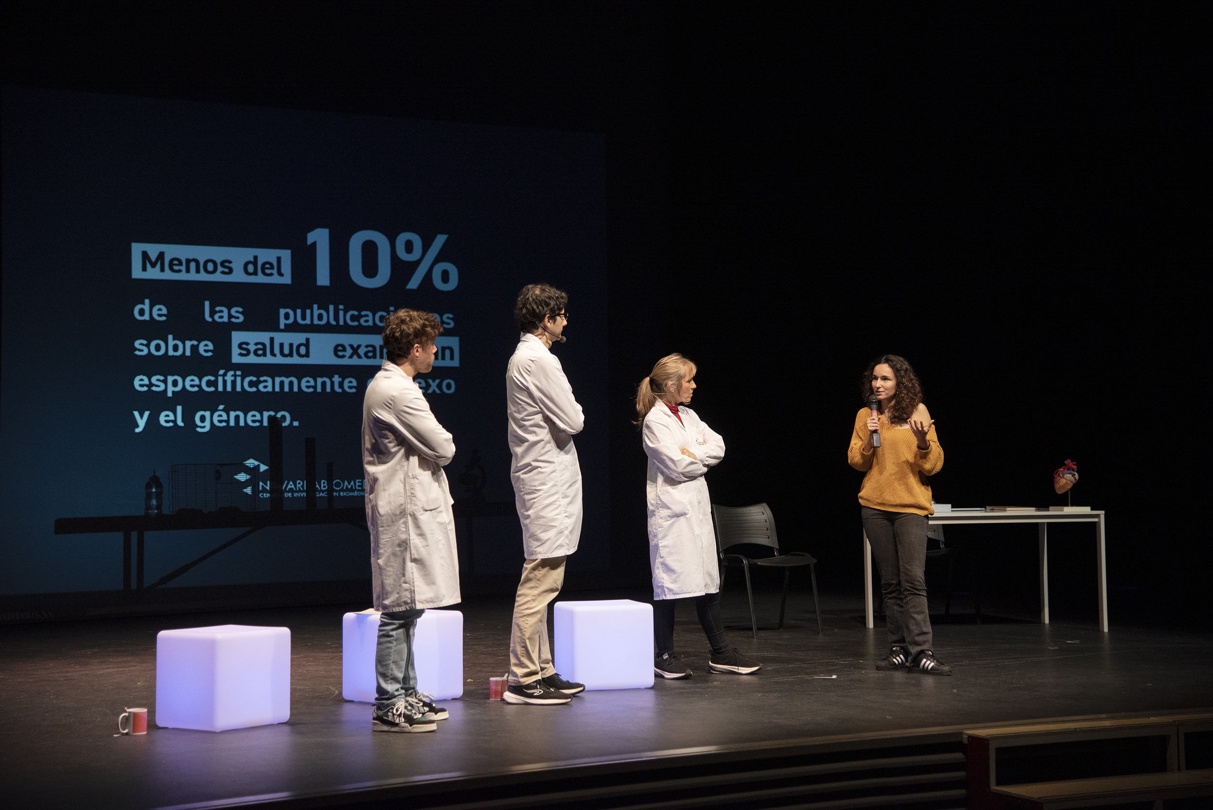 El centro de investigación biomédica Navarrabiomed ha organizado en la Casa de Cultura / Kultur Etxea de Peralta/Azkoien una jornada de teatro foro centrada en la importancia de incorporar la dimensión de género en la investigación y en el ámbito sanitario. La actividad ha reunido a más de 300 personas, entre las cuales hay que destacar el alumnado de cinco institutos de la Ribera Navarra.
