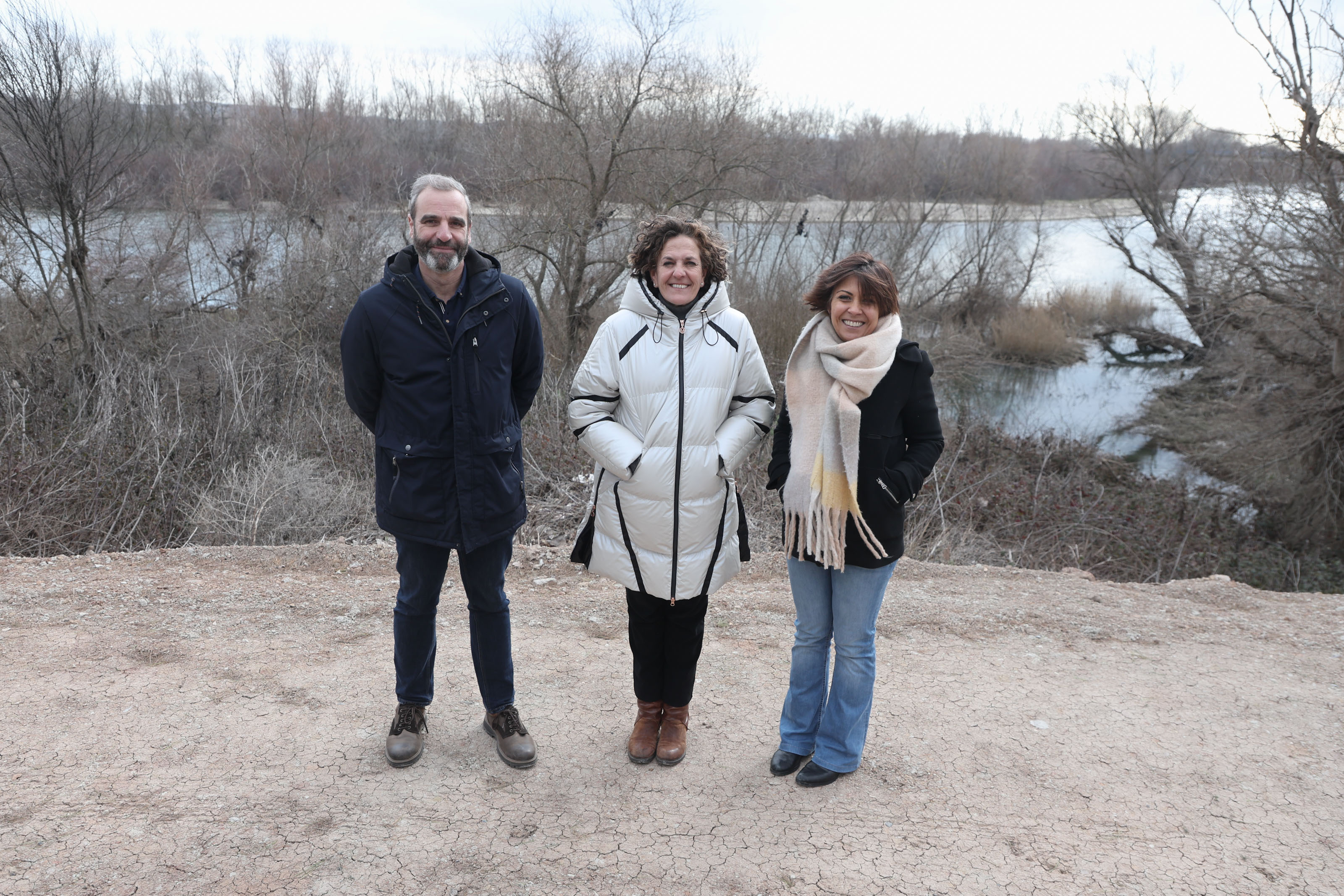 De izda a dcha: Luis Sanz, consejera Gómez y alcaldesa de Buñuel, en una zona del río Ebro objeto de actuación.  Descargar imagen Ver galería de imágenes