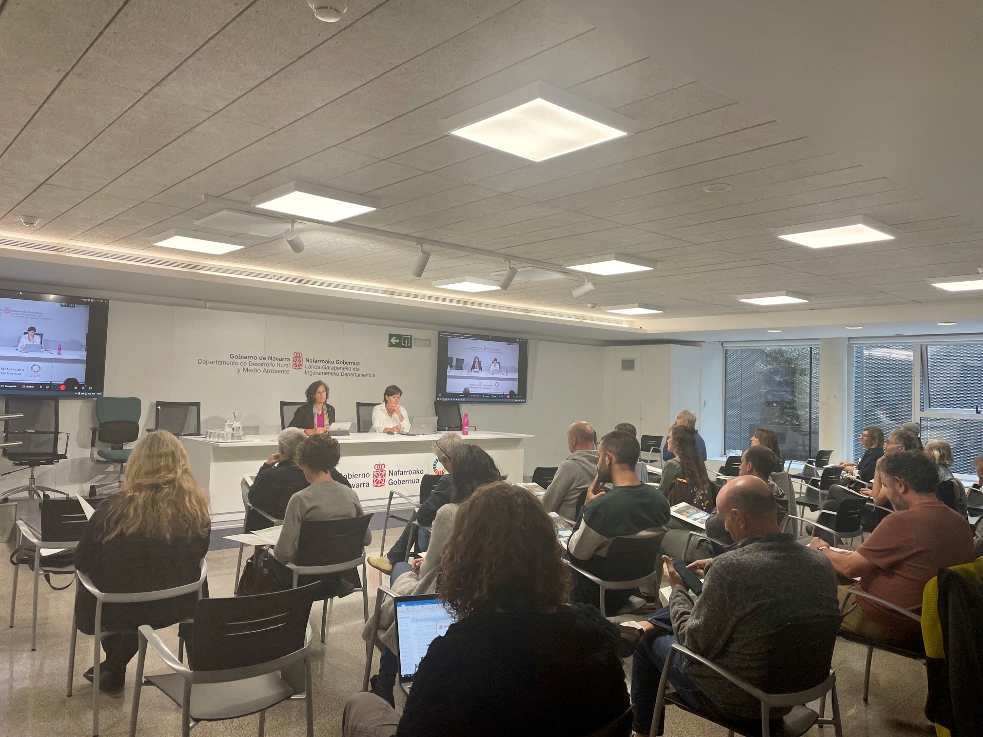La presentación del borrador de la ENEAS2030 ha corrido a cargo de la jefa de la Sección de Planificación Forestal y Educación Ambiental, Salomé Hernando. Posteriormente, ha tenido lugar una mesa redonda titulada ‘Catando los ejes’ y que ha sido el lugar de encuentro de diferentes experiencias y proyectos en el ámbito de las administraciones públicas y el sector privado, de otras comunidades y de Navarra; todas ellas relacionados con las temáticas que abordan los ejes de la Estrategia. En la mesa han intervenido: