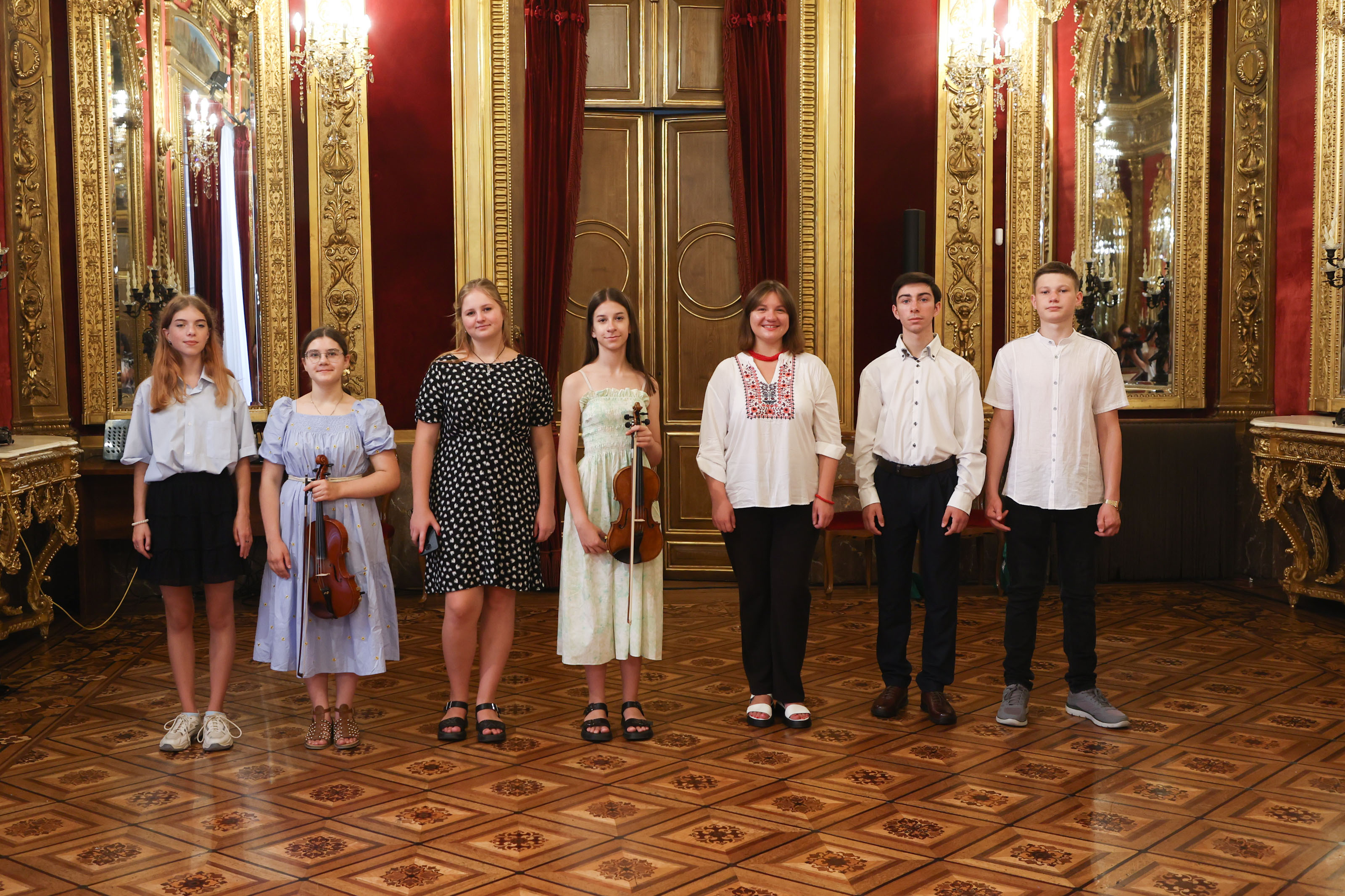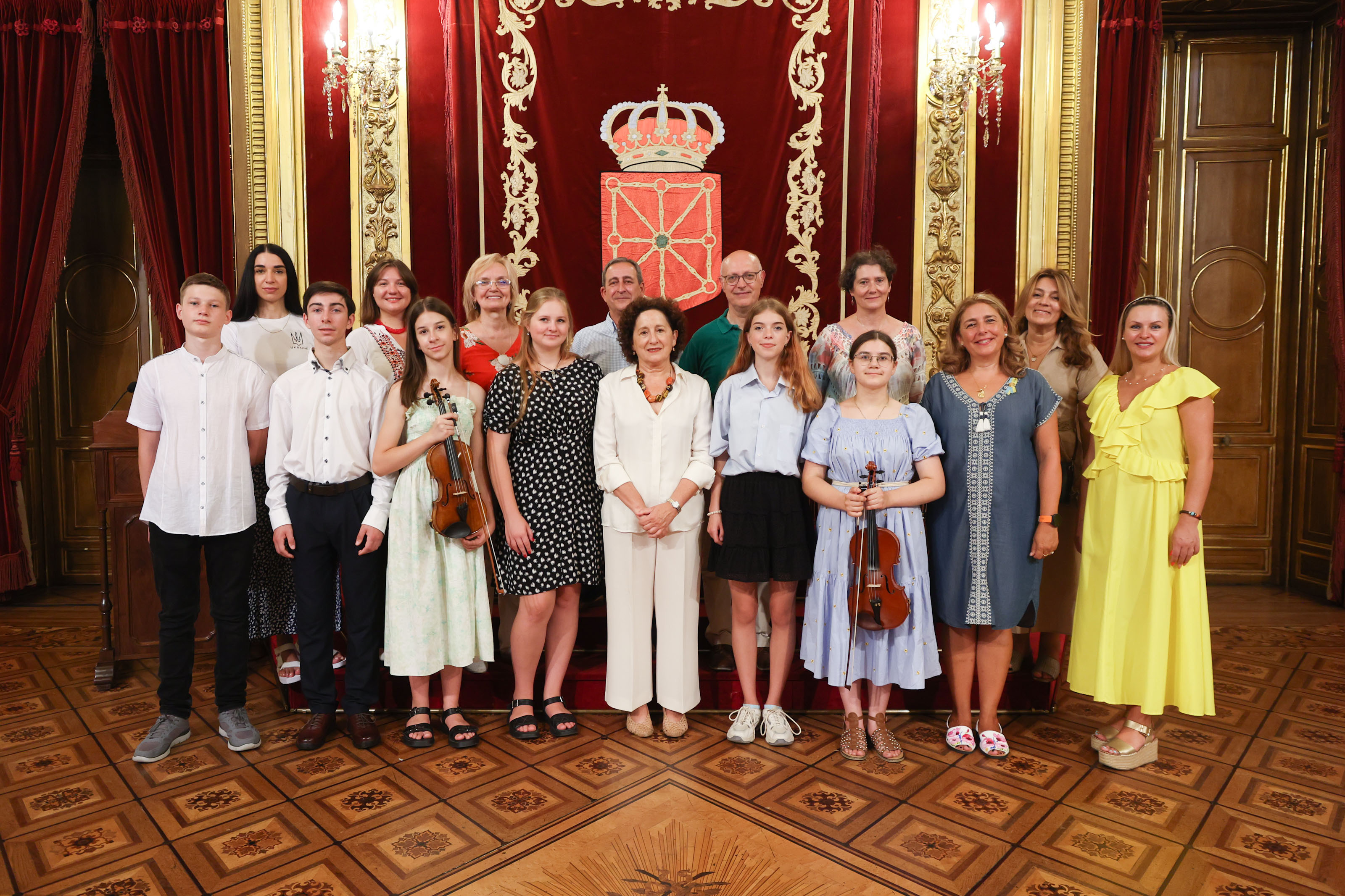 La consejera de Derechos Sociales, Economía Social y Empleo, Carmen Maeztu, ha recibido en el Palacio de Navarra a niños y niñas músicos del Liceo Musical de la ciudad ucraniana de Leópolis que ofrecen tres conciertos solidarios en Navarra.