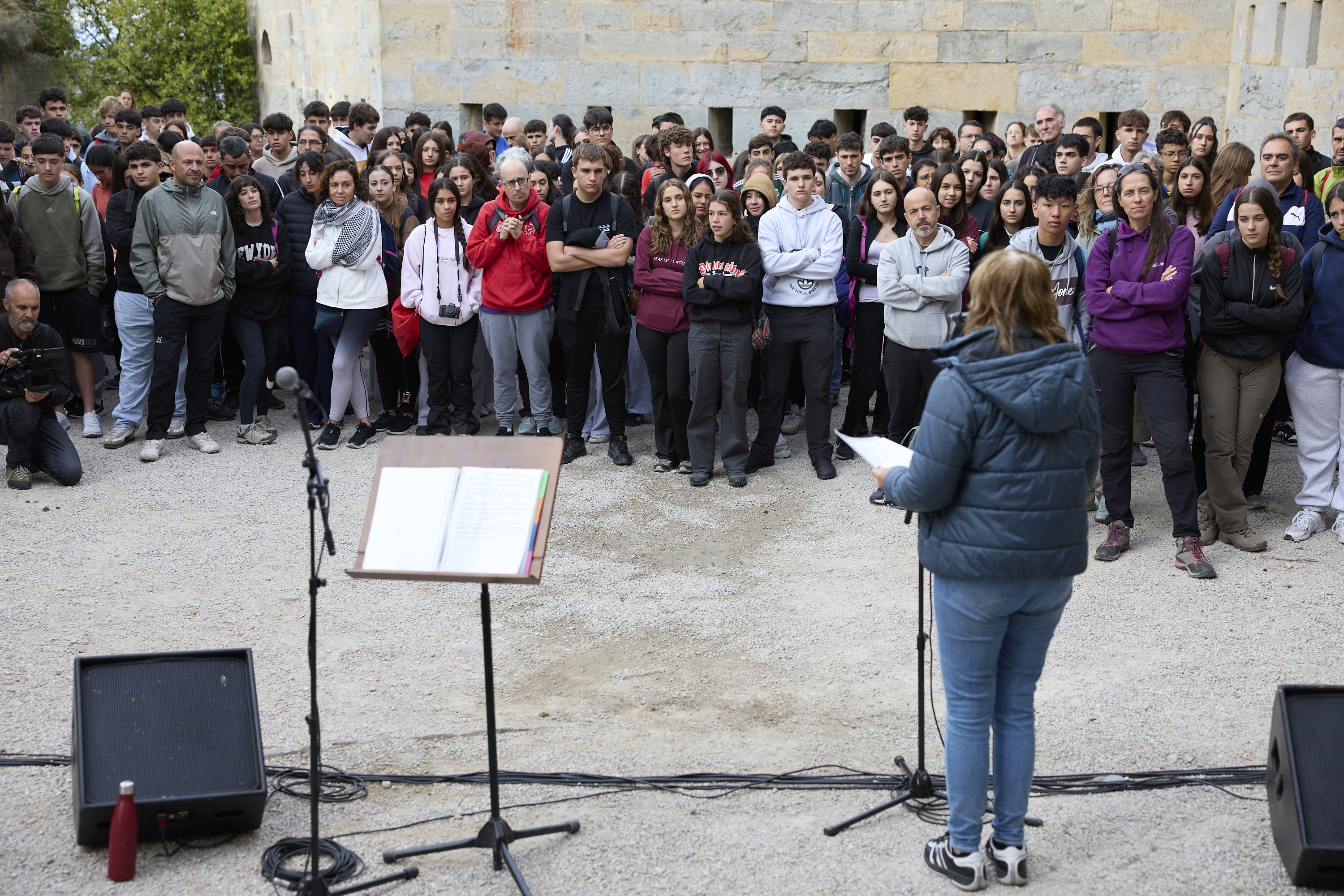 “Y, sobre todo, os pido que cuando volváis a vuestras casas, habléis de lo que habéis conocido. Habléis con vuestras familias, con vuestros amigas y amigos. Y contéis que lo que aquí se produjo, no tiene que volver a producirse. Y que es necesario que plantéis cara con el recuerdo y la memoria a los bulos, las noticias falsas o 'fake news' y a las políticas negacionistas y revisionistas de la ultraderecha”, ha dicho Ollo en el inicio del programa en el Fuerte de San Cristóbal. Este espacio será declarado próximamente Lugar de la Memoria por ser utilizado como cárcel franquista y del que el 22 de mayo de 1938 huyeron 795 presos. De ellos, 206 fueron asesinados en su huida, 14 ejecutados más tarde y el resto, fueron capturados y devueltos a la prisión. Solo tres lograron alcanzar la frontera francesa.