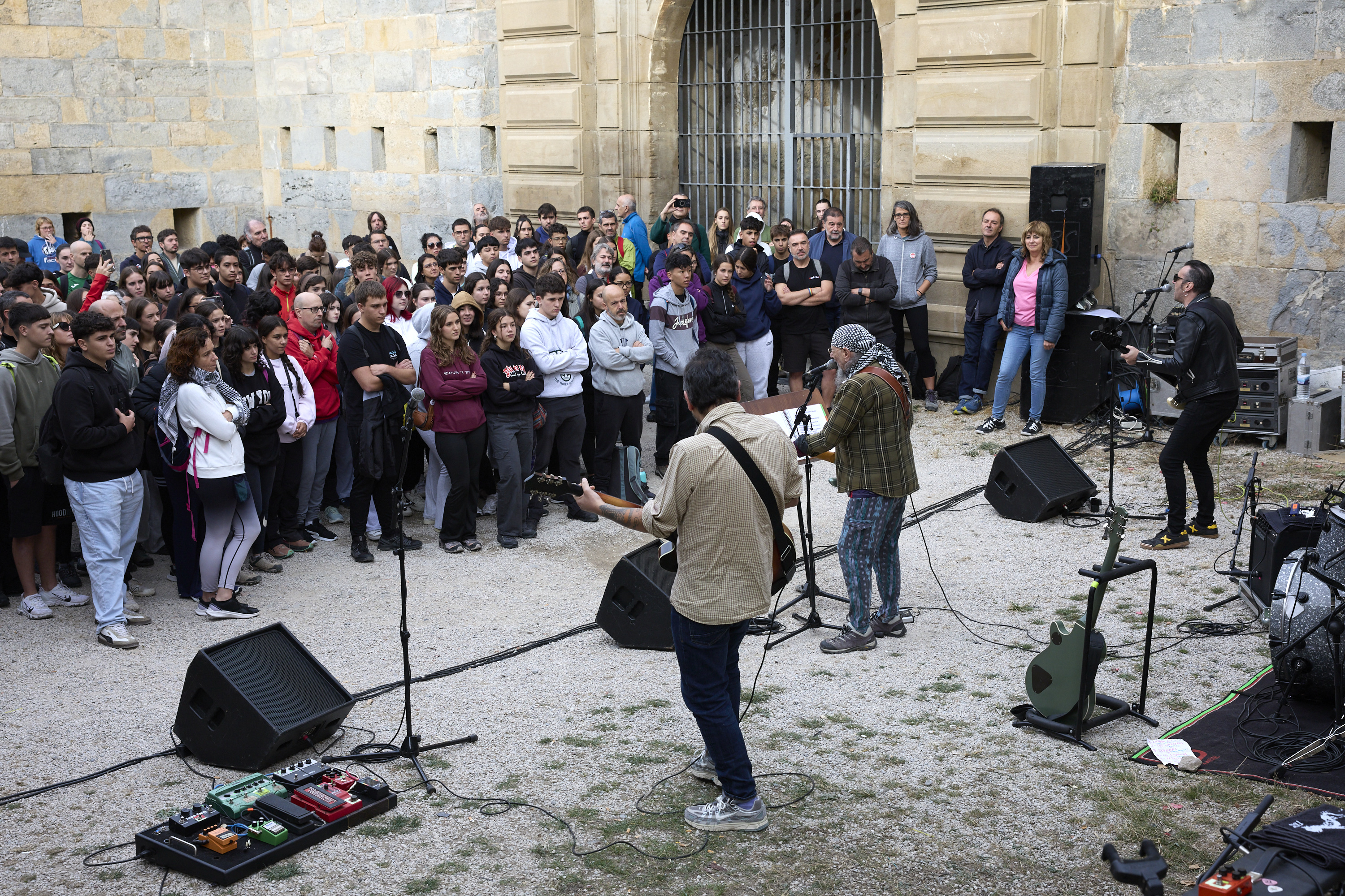 “Y, sobre todo, os pido que cuando volváis a vuestras casas, habléis de lo que habéis conocido. Habléis con vuestras familias, con vuestros amigas y amigos. Y contéis que lo que aquí se produjo, no tiene que volver a producirse. Y que es necesario que plantéis cara con el recuerdo y la memoria a los bulos, las noticias falsas o 'fake news' y a las políticas negacionistas y revisionistas de la ultraderecha”, ha dicho Ollo en el inicio del programa en el Fuerte de San Cristóbal. Este espacio será declarado próximamente Lugar de la Memoria por ser utilizado como cárcel franquista y del que el 22 de mayo de 1938 huyeron 795 presos. De ellos, 206 fueron asesinados en su huida, 14 ejecutados más tarde y el resto, fueron capturados y devueltos a la prisión. Solo tres lograron alcanzar la frontera francesa.