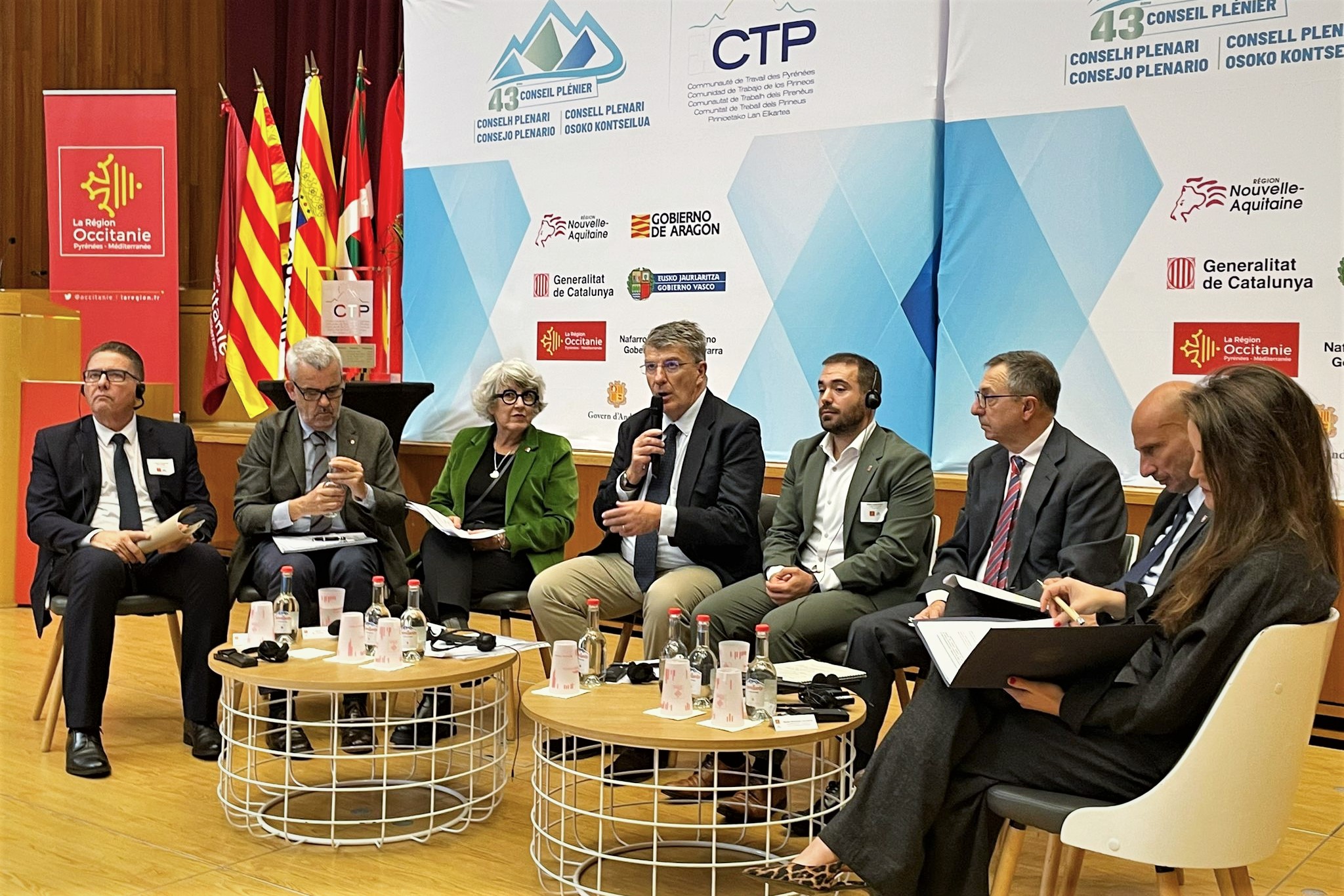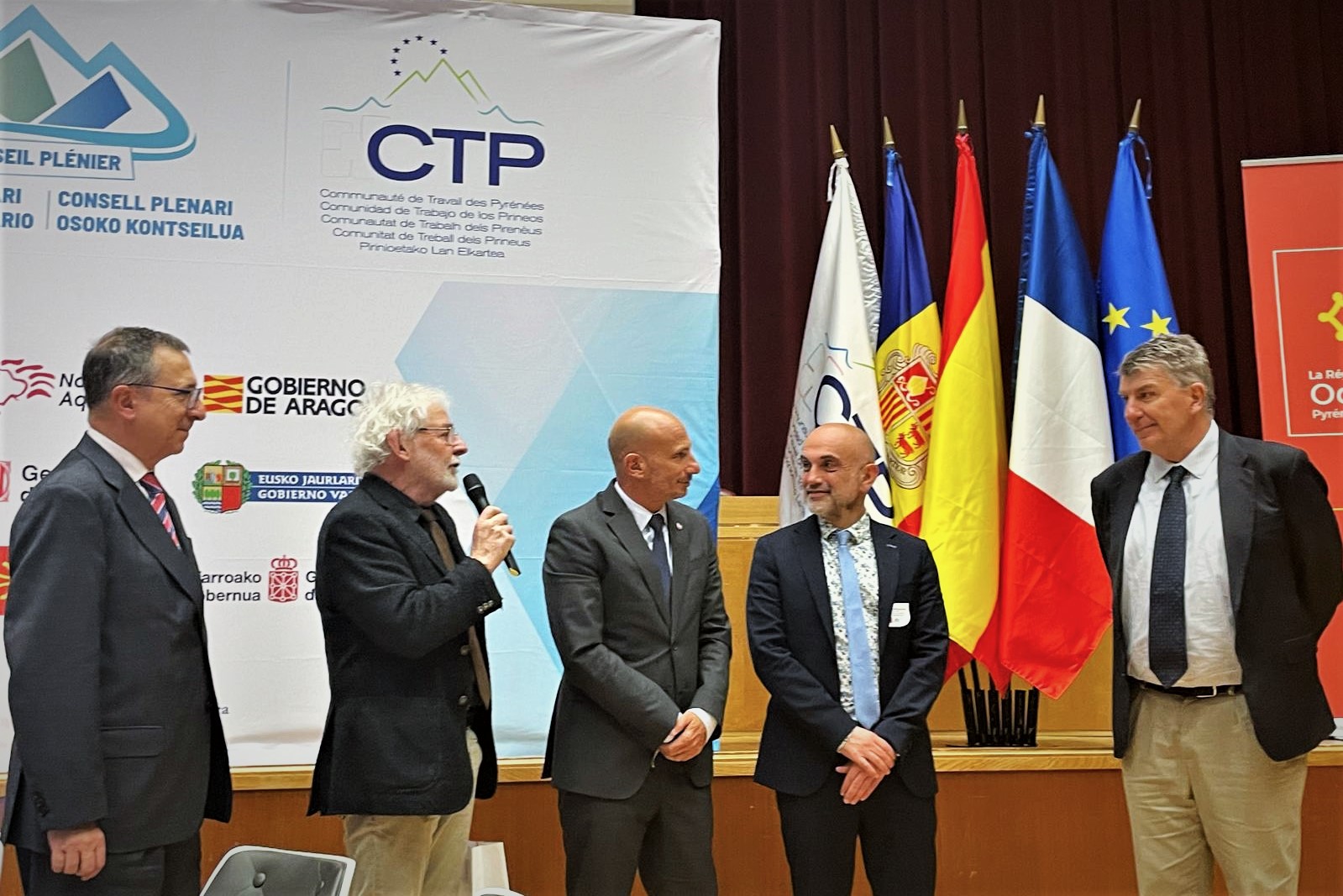 La Comunidad de Trabajo de los Pirineos (CTP) es un organismo de cooperación transfronteriza que agrupa a siete regiones de tres estados que se encuentran a ambos lados y en los Pirineos: Aragón, Cataluña, Navarra y País Vasco por parte de España; Nueva Aquitania y Occitania, por parte de Francia; y el Estado de Andorra. Cada dos años la presidencia corresponde a un miembro. En 2023 fue Occitania quien tomó de Euskadi el testigo. Ahora, a través de Pascale Peraldi, consejera de la Región, Occitanie ha realizado el relevo con Navarra en este plenario. En él también se ha compartido el balance de estos dos últimos años, cuya importancia ha puesto de relieve la vicepresidenta Ollo en el momento de tomar la Presidencia.
