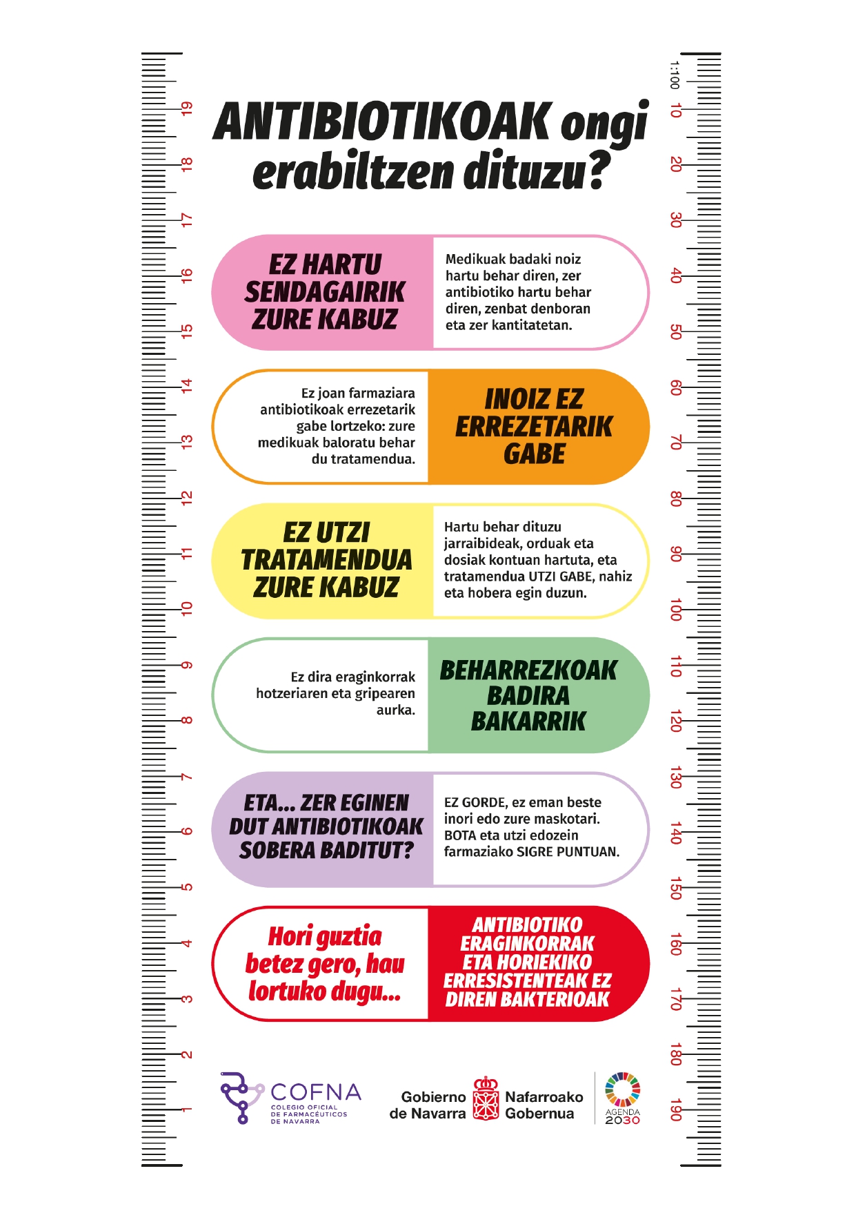 El objetivo principal de la campaña es hacer partícipe a la población en la lucha frente a la propagación de bacterias resistentes a los antibióticos. Acciones tan sencillas como seguir las instrucciones precisas a la hora de tomarlos, nunca deshacernos de ellos en casa, a través de las basuras, retretes o desagües, sino en los puntos habilitados en las farmacias, para evitar que los antibióticos sigan generando bacterias resistentes en el medio ambiente (actualmente se consideran contaminantes de aguas de consumo).
