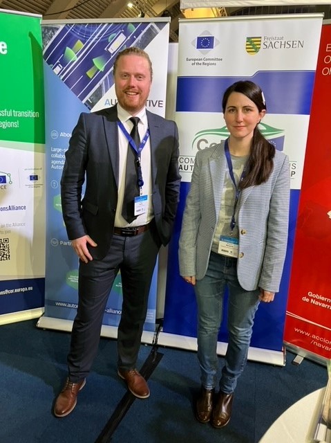 La Delegación del Gobierno de Navarra en Bruselas participa en la 10ª Cumbre Europea de Ciudades y Regiones que se está celebrando los días 18 y 19 de marzo en la ciudad belga Mons, con un stand dedicado a la transformación del sector de la automoción.