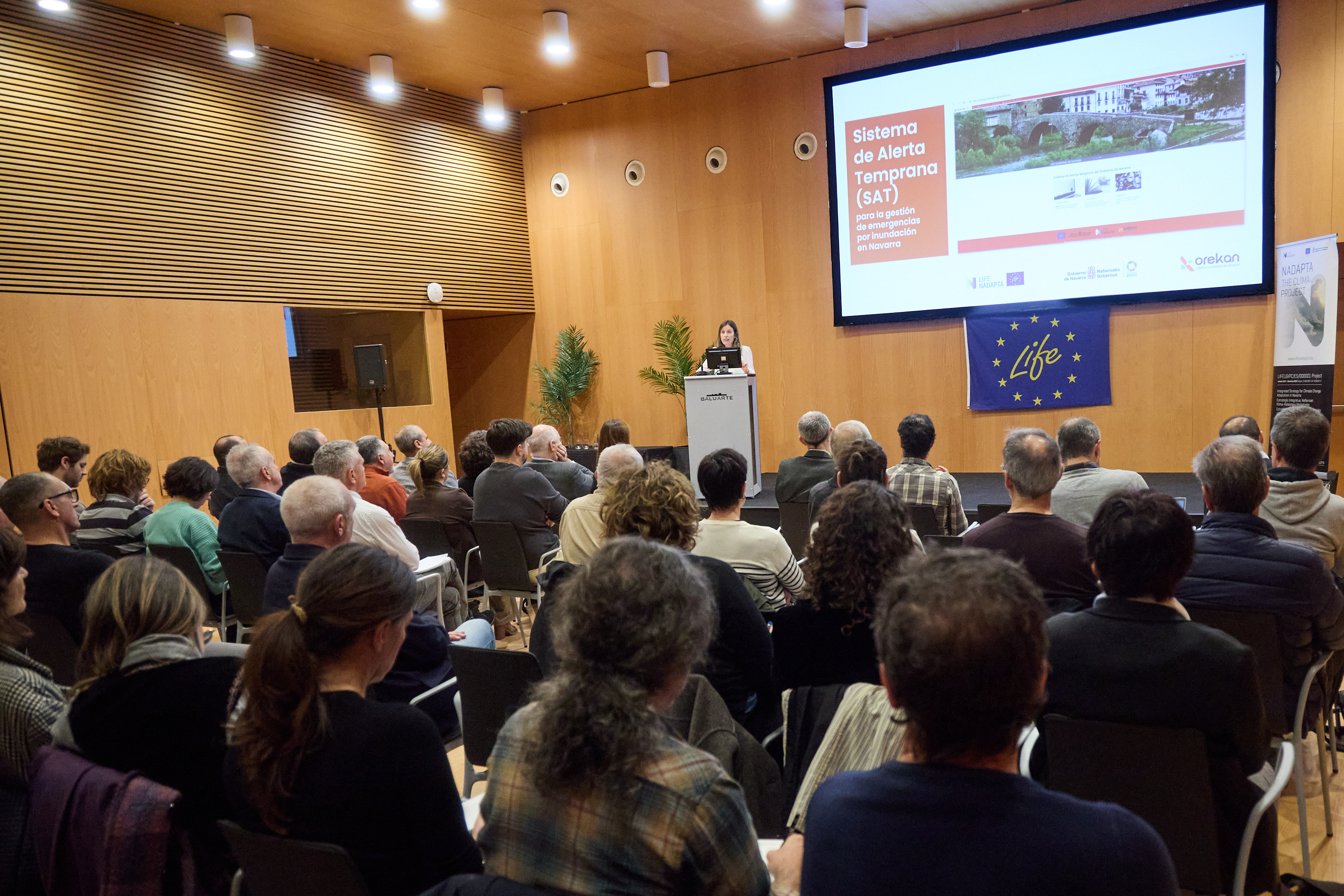 La jornada de presentación del SAT ha contado también con la participación de la especialista de agua Ana Castiella, entre otros miembros del equipo técnico de Orekan, y del director de la Oficina de Cambio Climático, Fernando Señas. Asimismo, ha acudido personal técnico de Protección Civil del Gobierno de Navarra, principales destinatarios de los avisos de esta herramienta y con quien se ha coordinado el desarrollo de la misma; una quincena de alcaldes y alcaldesas de los 50 ayuntamientos de toda la Comunidad Foral que cuentan con su propio sistema de alerta municipal y que se integran en el SAT regional; y también responsables técnicos procedentes de los gobiernos vasco y aragonés, con el objetivo de analizar la posible aplicación de la herramienta en sus comunidades.