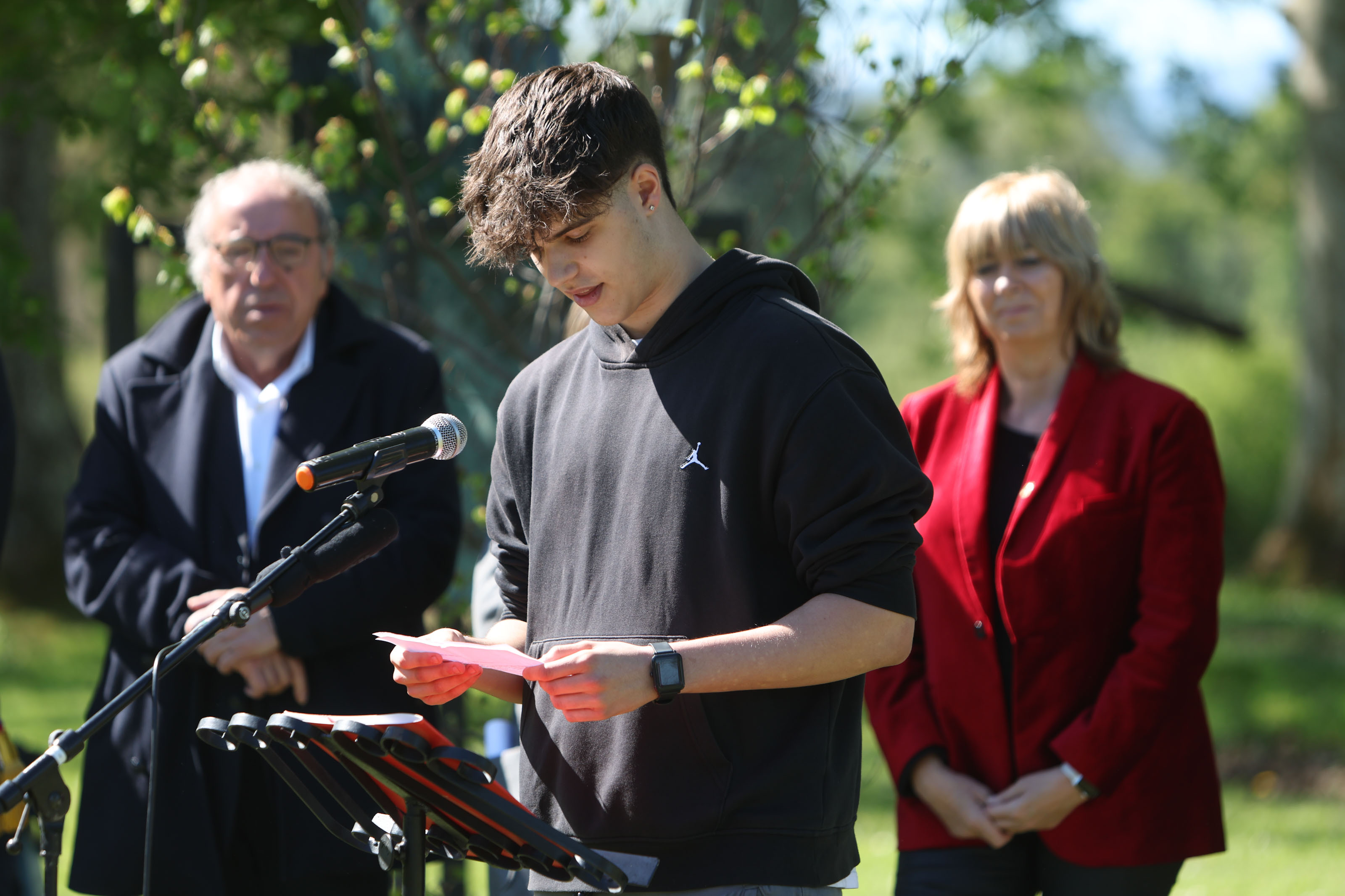 Así mismo, en representación del centenar de alumnos y alumnas del IES Tierra Estella han intervenido las alumnas Gadea Fernández Izco, Lucía Fuentes Arroyo y que han leído varios poemas.
