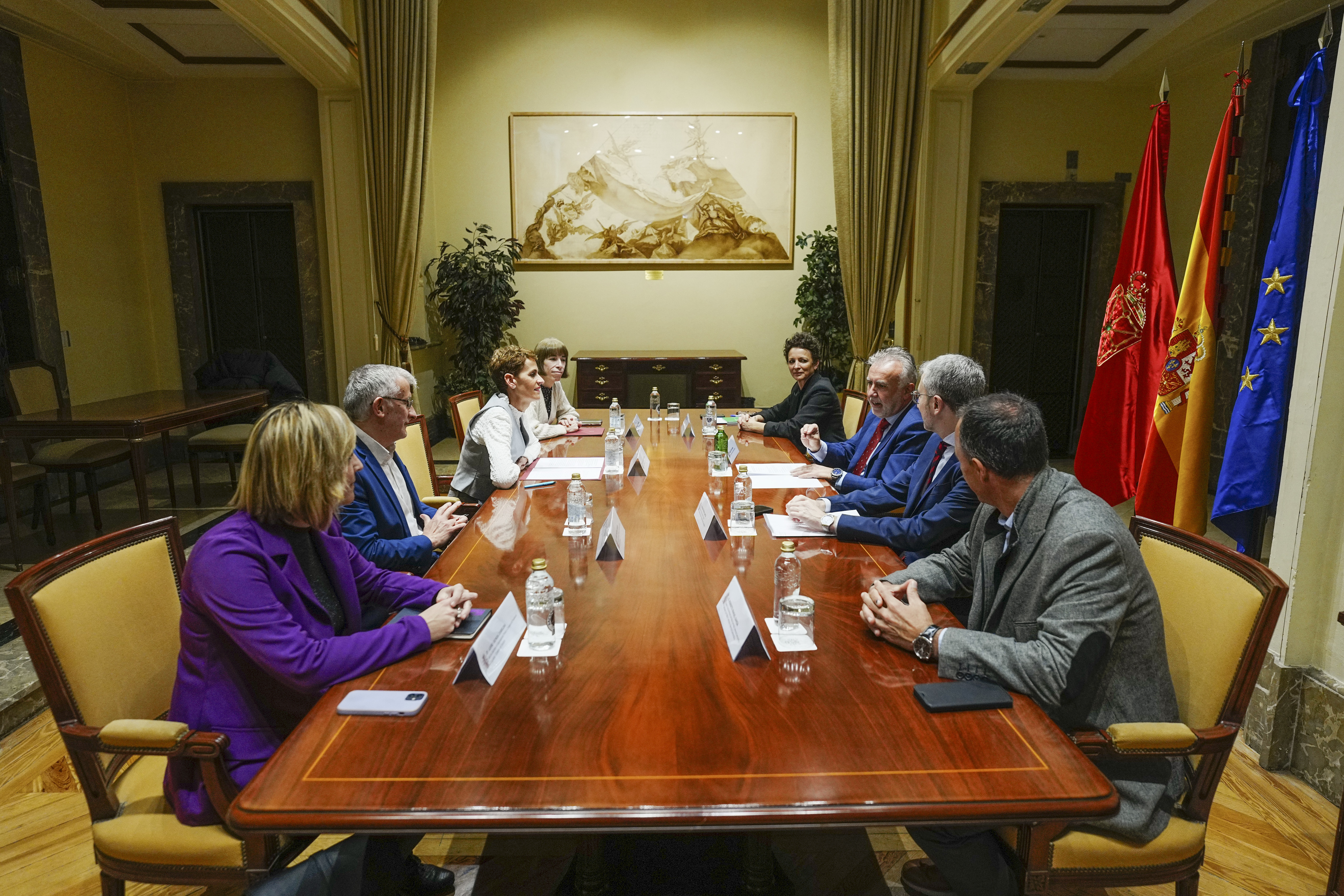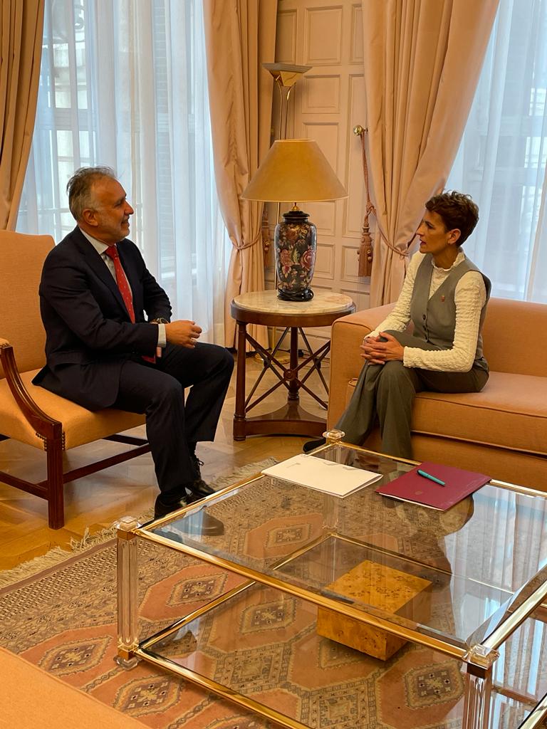 La Presidenta de Navarra, María Chivite, y el ministro de Política Territorial y Memoria Democrática, Ángel Víctor Torres, han mantenido hoy un encuentro en Madrid, en el que también han participado el Vicepresidente Primero y Consejero de Presidencia e Igualdad del Ejecutivo foral, Félix Taberna, y el Secretario de Estado de Política Territorial, Arcadi España.