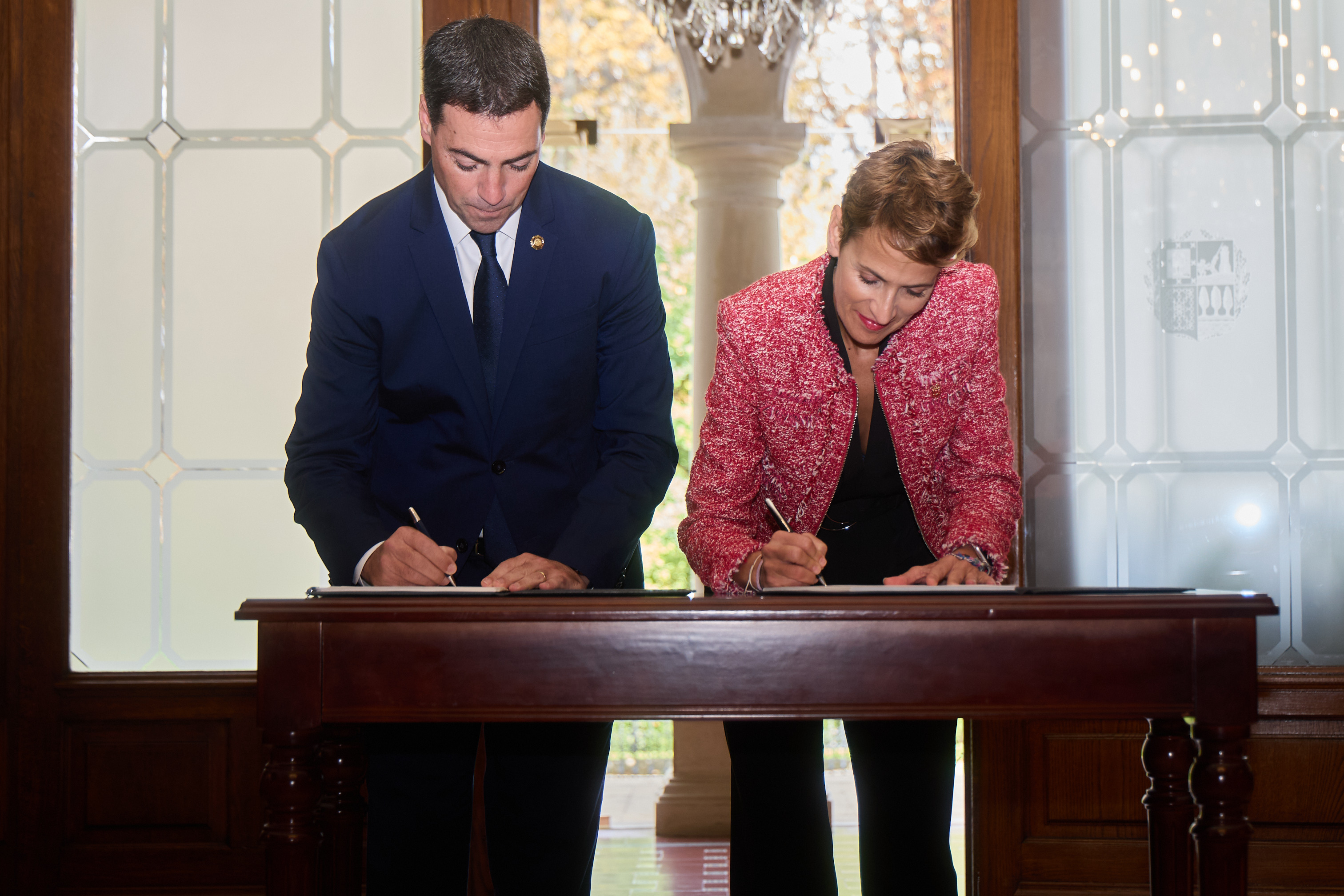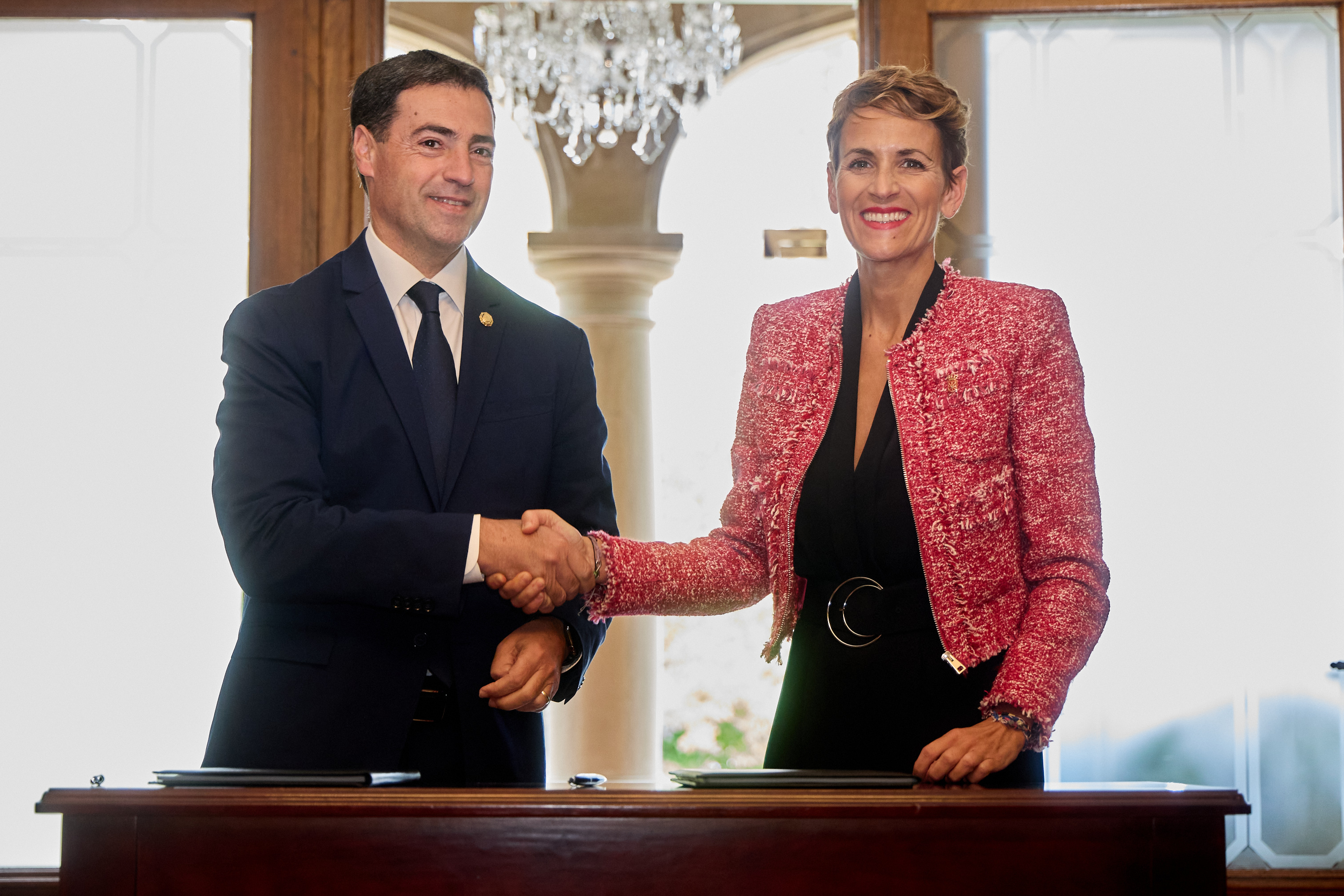 La Presidenta de Navarra, María Chivite Navascués, y el Lehendakari, Imanol Pradales Gil, han suscrito esta mañana en el Palacio de Ajuria Enea la renovación para los próximos cuatro años del Protocolo General de Colaboración entre el Ejecutivo foral y el Gobierno Vasco, que actualiza, amplía y consolida la cooperación entre ambas Comunidades.