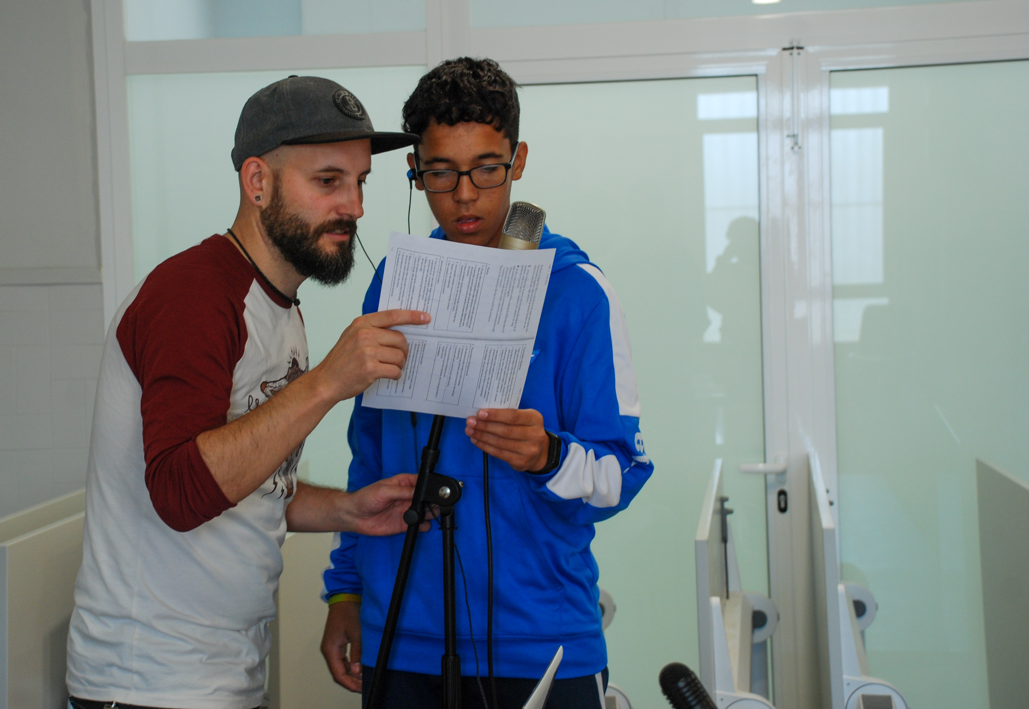 Por fin, llega el último paso del taller que algunos esperan con vehemencia y otros con temor: escribir y grabar la canción. La rima se construye también en equipo, aunque afinando la vista, la clase no se diferencia tanto de lo que se ve en una prueba final de cualquier asignatura. Hay a quienes los versos les salen muy fácil, quienes se atascan con los nervios y no les sale ninguno y quienes tienes mayores dificultades porque apenas conocen el idioma. También están los que se desbordan y no les sale nada y los tramposos que cogen el móvil a escondidas para buscar rimas.
