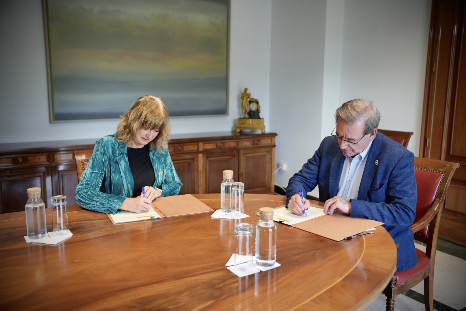 El acuerdo firmado hoy concreta que el Ministerio destinará 30.000 euros al diseño y la producción del proyecto expositivo “Frontera y represión” y asumirá la elaboración de una unidad didáctica relativa a los trabajos forzados y las estructuras de hormigón en el Pirineo.