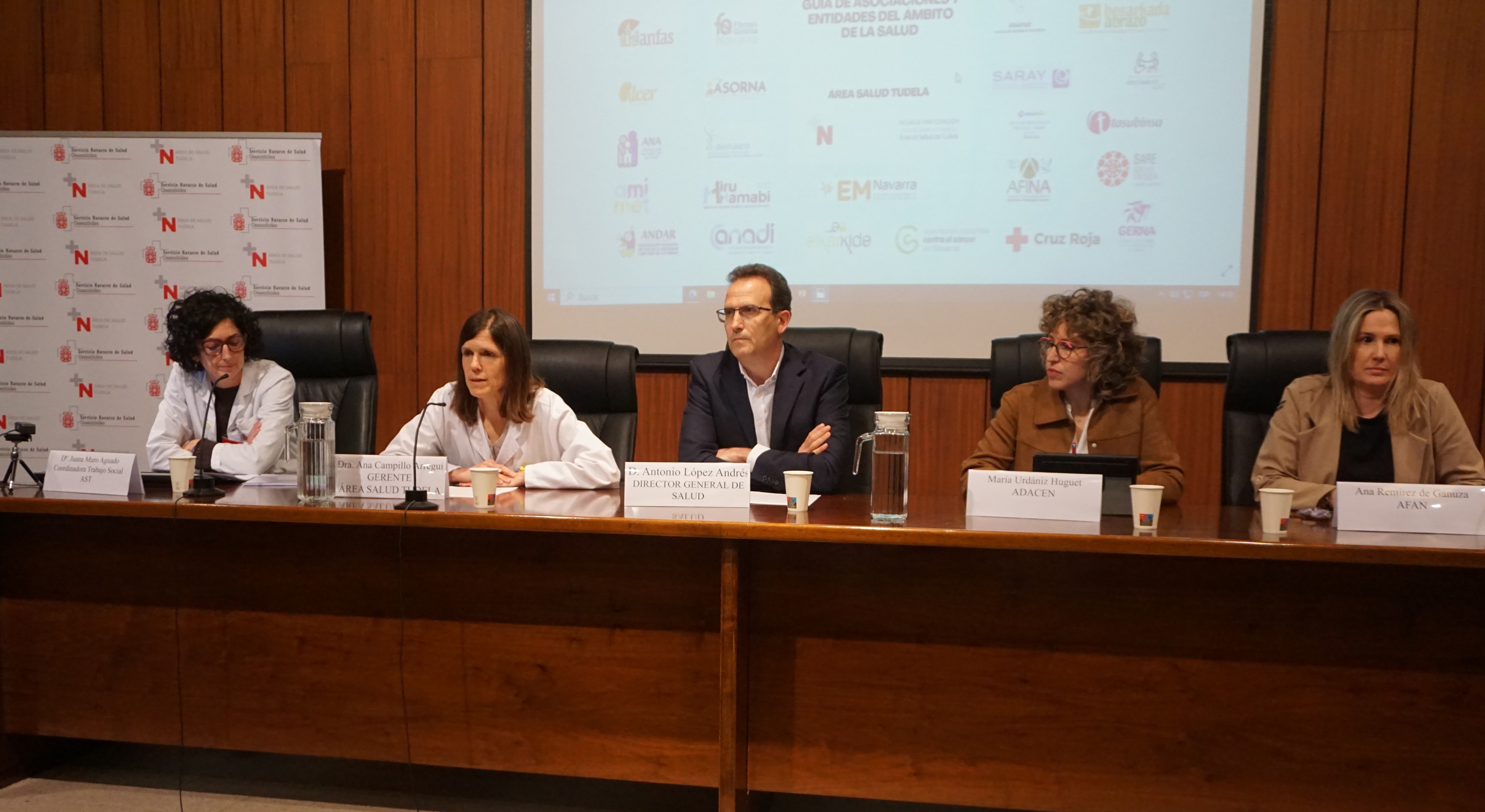 A la presentación de la guía, que ha tenido lugar esta mañana en el Hospital Reina Sofía en el marco de las V Jornadas de la Salud que se llevan a cabo entre el 5 y 15 de mayo, ha asistido el director general de Salud, Antonio López; la gerente del Área de Salud de Tudela, Ana Campillo; y la jefa de Sección de Atención a la Ciudadanía y Coordinación Sociosanitaria, Juana Muro. Asimismo, ha contado con la presencia de profesionales de AFAN y ADACEN, en representación de las 33 asociaciones que han participado en su elaboración.