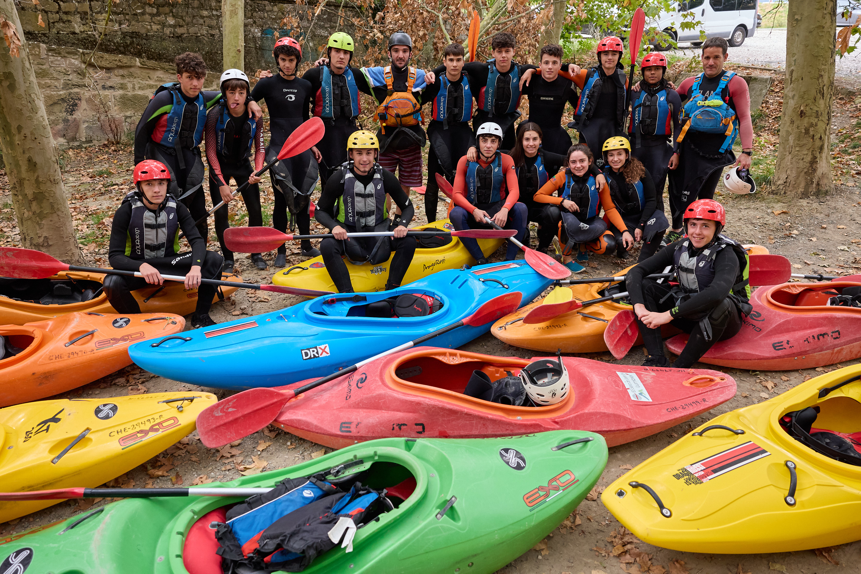 En el exterior, la Reina Letizia y las autoridades asistentes han caminado junto a las pistas de baloncesto y de atletismo, donde se encontraba el alumnado de Grado Medio en Medio Natural y Tiempo Libre, y también junto al campo de fútbol, ocupado por los y las estudiantes de Grado Superior de Enseñanza y Animación Socio Deportiva. Junto al polideportivo, la comitiva ha saludado a las y los alumnos que regresaban en ese momento de una clase de piragüismo en el río Irati, y se ha realizado una fotografía con una placa conmemorativa de la visita.