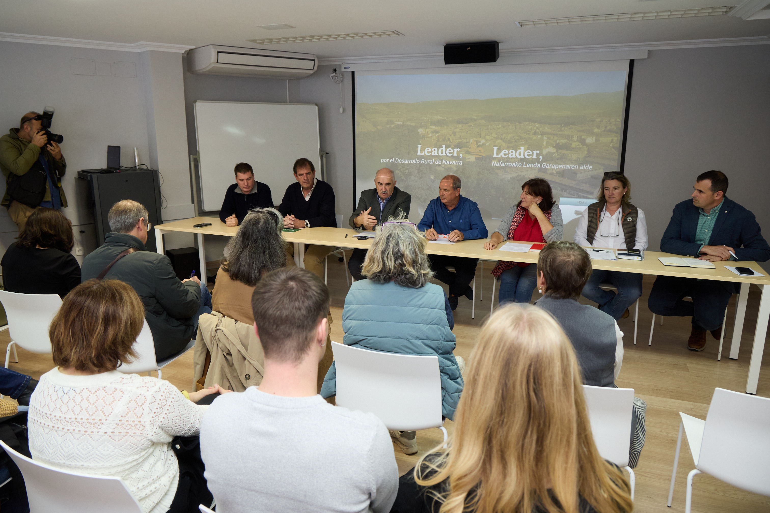 El consejero de Desarrollo Rural y Medio Ambiente, José Mari Aierdi, el director general de Desarrollo Rural, Ruben Goñi y representantes de los cuatro Grupos de Acción Local (GAL) de Navarra han dado a conocer algunos de los nuevos proyectos que ya son una realidad en Navarra gracias a las ayudas del Departamento a través de los fondos LEADER, el Programa de Desarrollo Rural de la Unión Europea basado en un enfoque de abajo hacia arriba, donde las comunidades locales y los GAL diseñan e implementan estrategias para impulsar la economía y la calidad de vida en sus territorios.