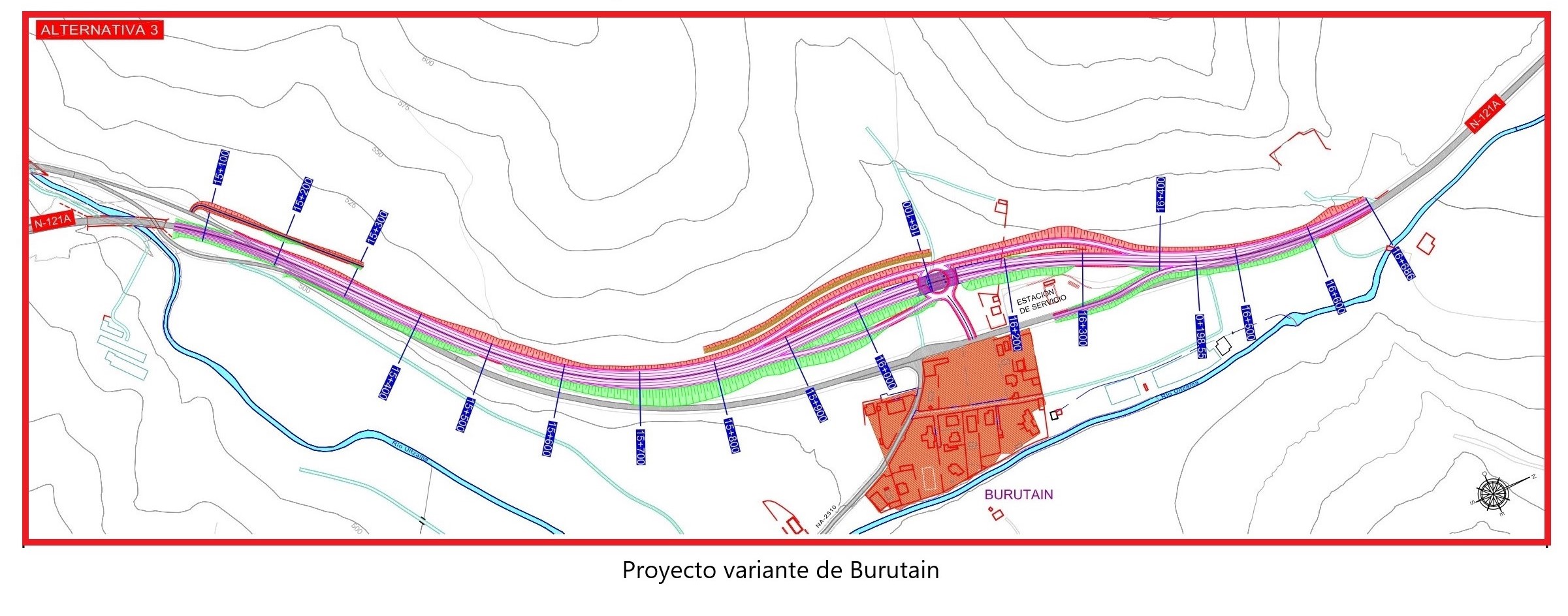 El Departamento de Cohesión Territorial, a través de la Dirección General de Obras Públicas e Infraestructuras, ha sacado nuevamente a licitación la redacción del proyecto de la variante de Burutain, situada en la N-121-A. El presupuesto base de licitación asciende a 100.000 euros.