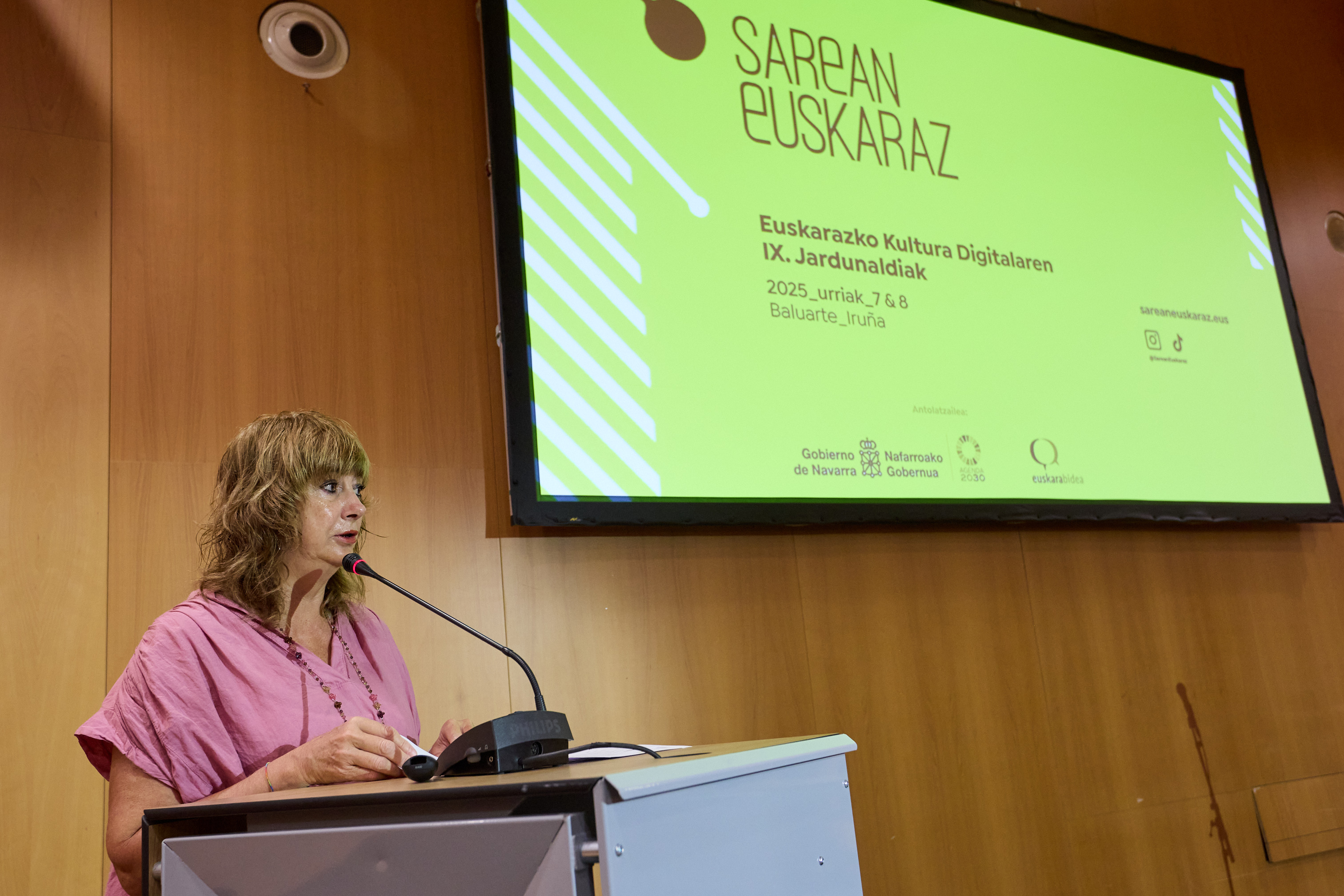 Sarean Euskaraz llega a su IX edición este 2025 y lo hace reuniendo a unos 700 jóvenes de distintos centros educativos de la comarca de Pamplona / Iruña. Este martes y miércoles, días 7 y 8 de octubre, las jornadas, que fomentan la formación y conocimiento del alumnado de Secundaria en las Tecnologías de la Información y la Comunicación (TIC) en euskera, tienen lugar en el Palacio de Congresos y Auditorio de Navarra, Baluarte de la capital navarra. La vicepresidenta del Gobierno de Navarra y consejera de Memoria y Convivencia, Acción Exterior y Euskera, Ana Ollo, ha visitado esta iniciativa promovida por el Ejecutivo Foral a través de Euskarabidea-Instituto Navarro del Euskera. La han acompañado el director gerente de Euskarabidea, Javier Arakama, y parte del equipo de este organismo autónomo.