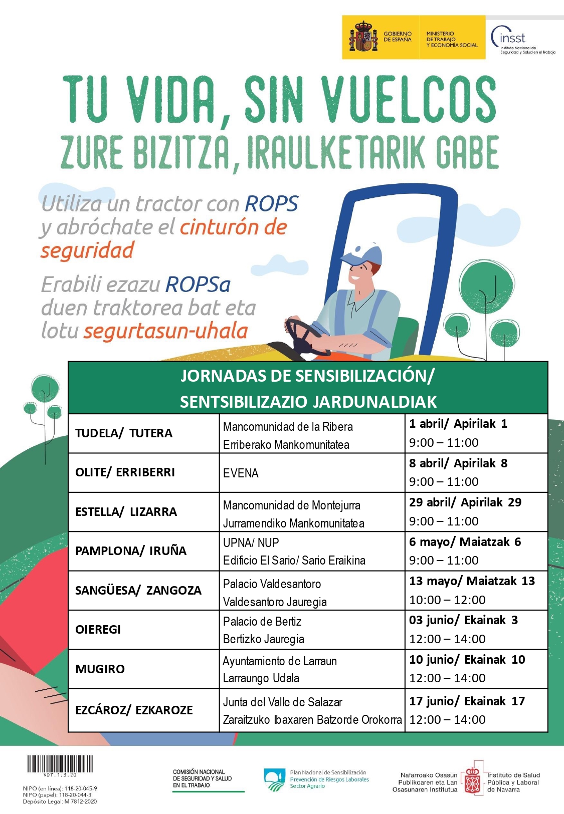 El ciclo, que se desarrollará entre los meses de abril y junio, se enmarca en la campaña “Tu vida, sin vuelcos / Zure bizitza, iraulketarik Gabe”, promovida a nivel estatal por el Instituto Nacional de Seguridad y Salud en el Trabajo (INSST) e impulsada en Navarra por el ISPLN.