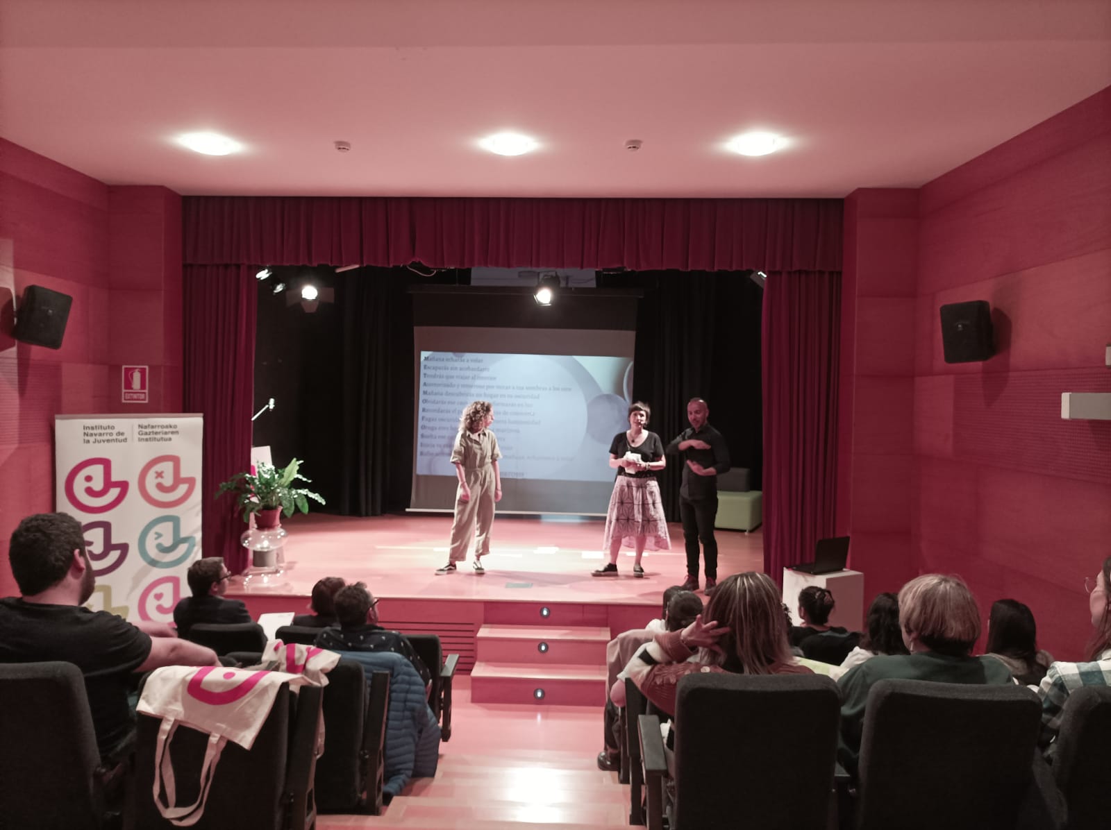 Las ponencias han abordado distintas temáticas relacionadas con el bienestar emocional de la juventud, como por ejemplo los estudios, las relaciones de pareja, la soledad o la exclusión social. Así, en la primera jornada han participado las psicólogas y terapeutas Estefanía Regalado y Lidia Oroz con su ponencia “Si me juzgas, ni me ves”, Maite Eraso, acerca de “Enamorarse y no morir en el intento” y Laura Calvo sobre “Cómo sobrevivir a un día de mierda”.
