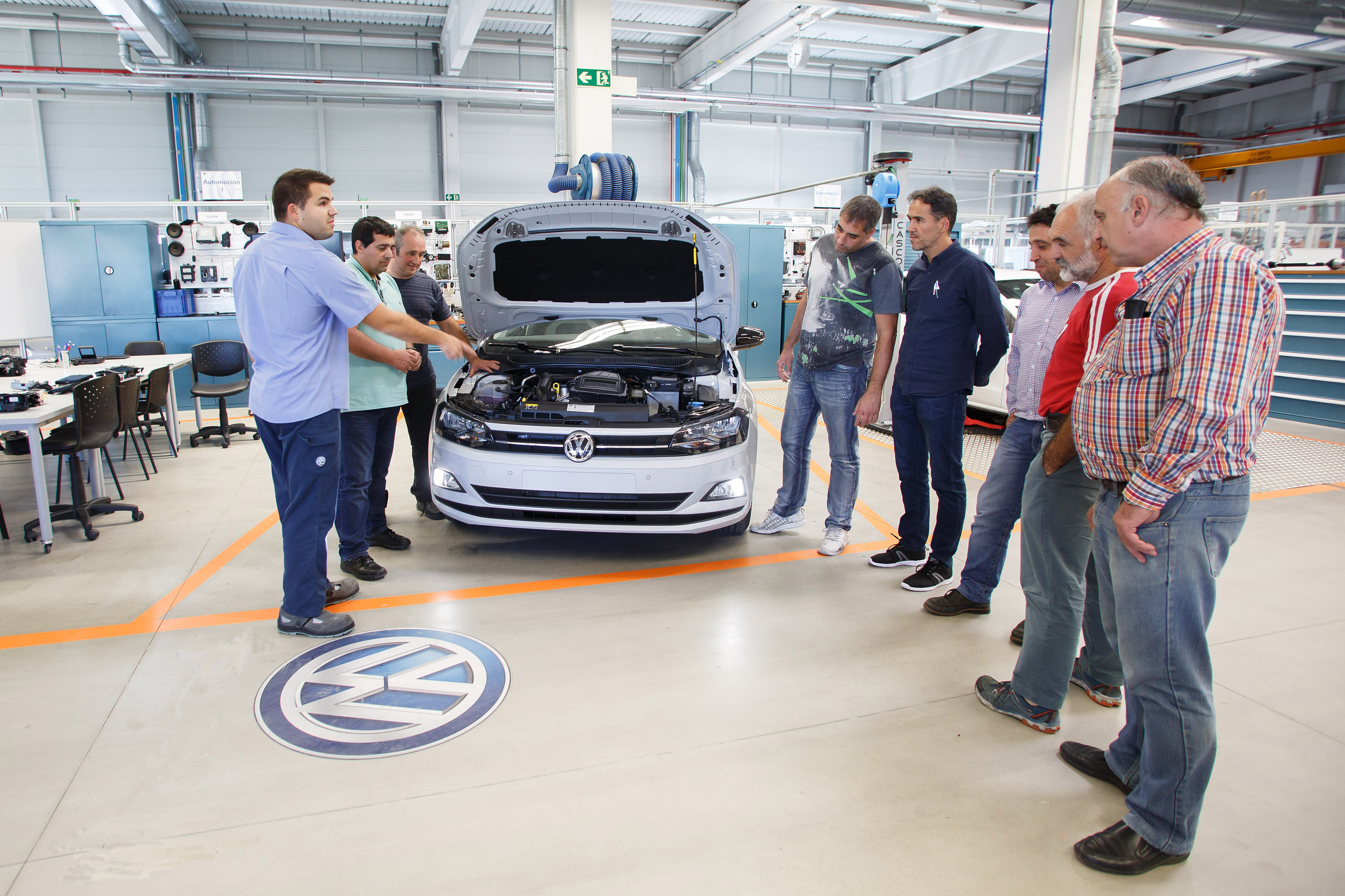 Una treintena de profesores de centros públicos de Formación Profesional están completando estas semanas un curso de automoción en las instalaciones de Volkswagen Academy, el centro de formación de Volkswagen Navarra. Los docentes, procedentes de los CIP Virgen del Camino, Donapea y ETI Tudela y del IES Huarte, tienen la oportunidad de conocer las principales novedades del nuevo Volkswagen Polo y sus diferentes motorizaciones.