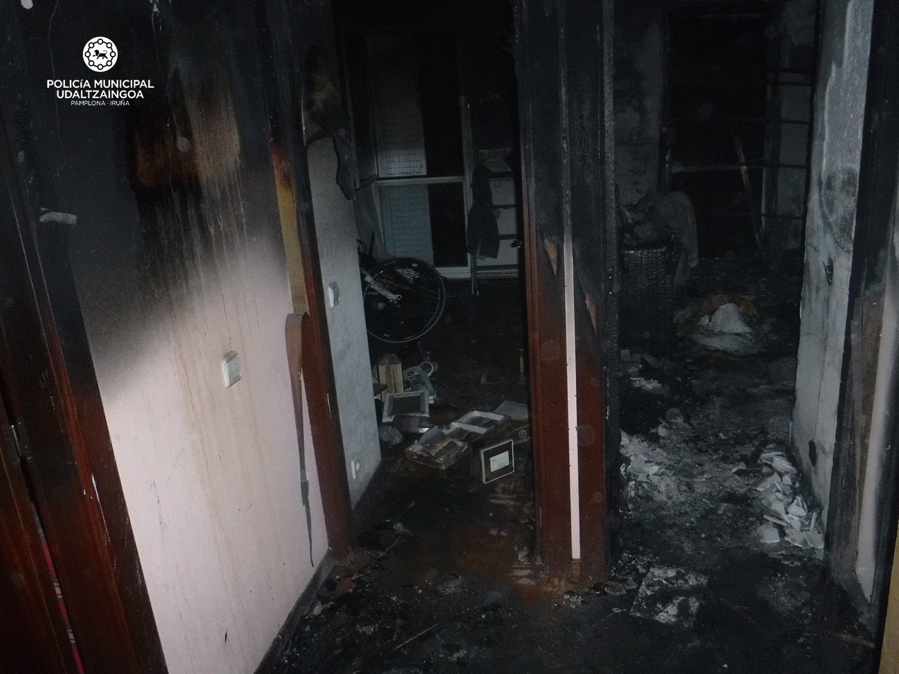 Un intoxicado y dos viviendas desalojadas tras un incendio en Pamplona