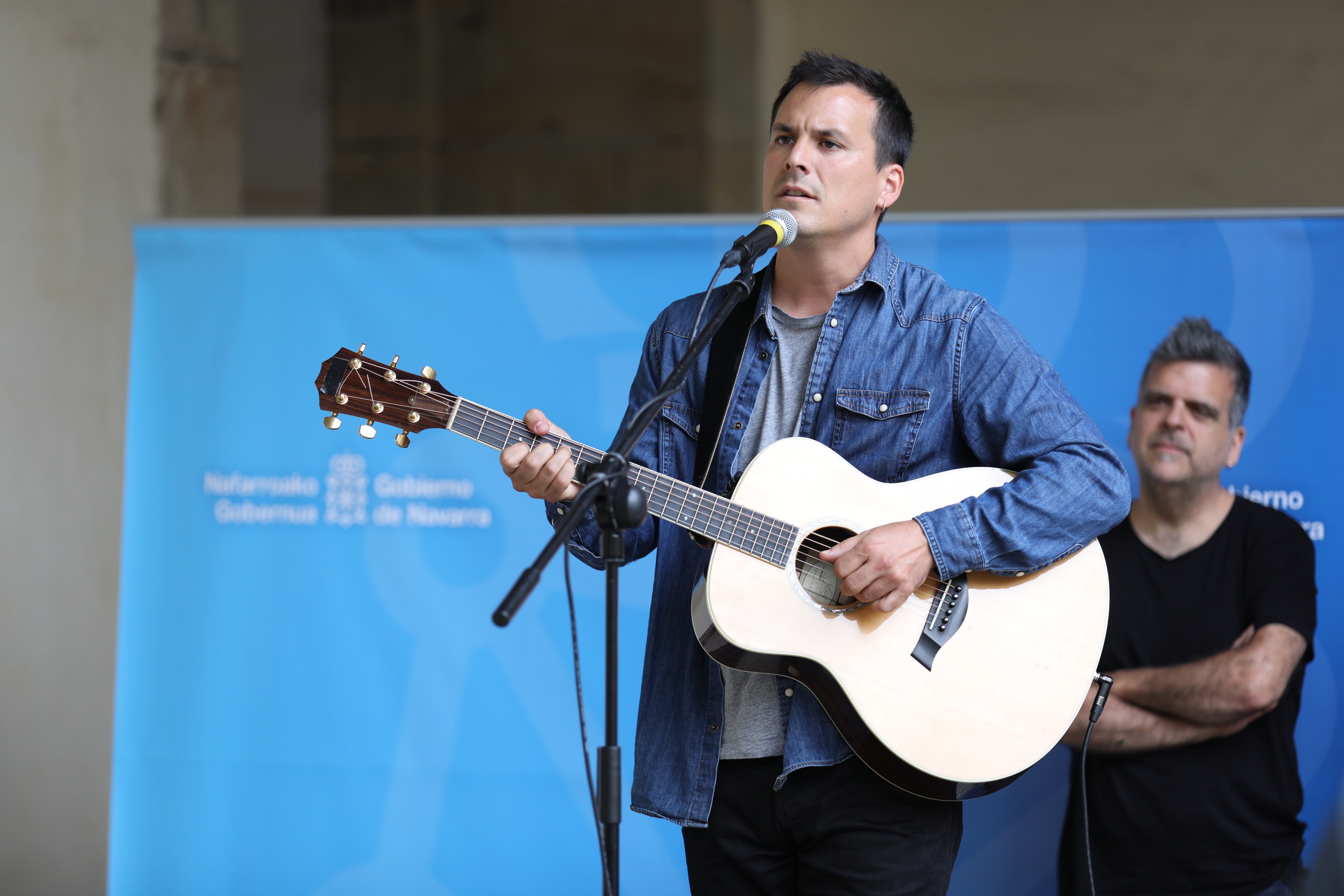 Imitando por tanto a las sesiones que ofrece el programa “Musikariak Ikastetxeetan” en la presentación de la segunda edición, en el claustro del Departamento, la música tampoco ha faltado. Para ello se han desplazado hasta la sede de la cuesta de Santo Domingo Mikel Inun, Rafa Rueda, Pelax, Zuriñe Hidalgo, Amorante, Xabi San Sebastián, eta Jon Gurrutxaga. De hecho, tras la intervención de la consejera María Solana, el cantante Mikel Inun ha ofrecido la canción “Da nola” y posteriormente el cantante Jon Gurrutxa y Amorante a la trompeta han sorprendido a las personas asistentes con otro acústico de Txikia handi y el tema Hitz lauz.