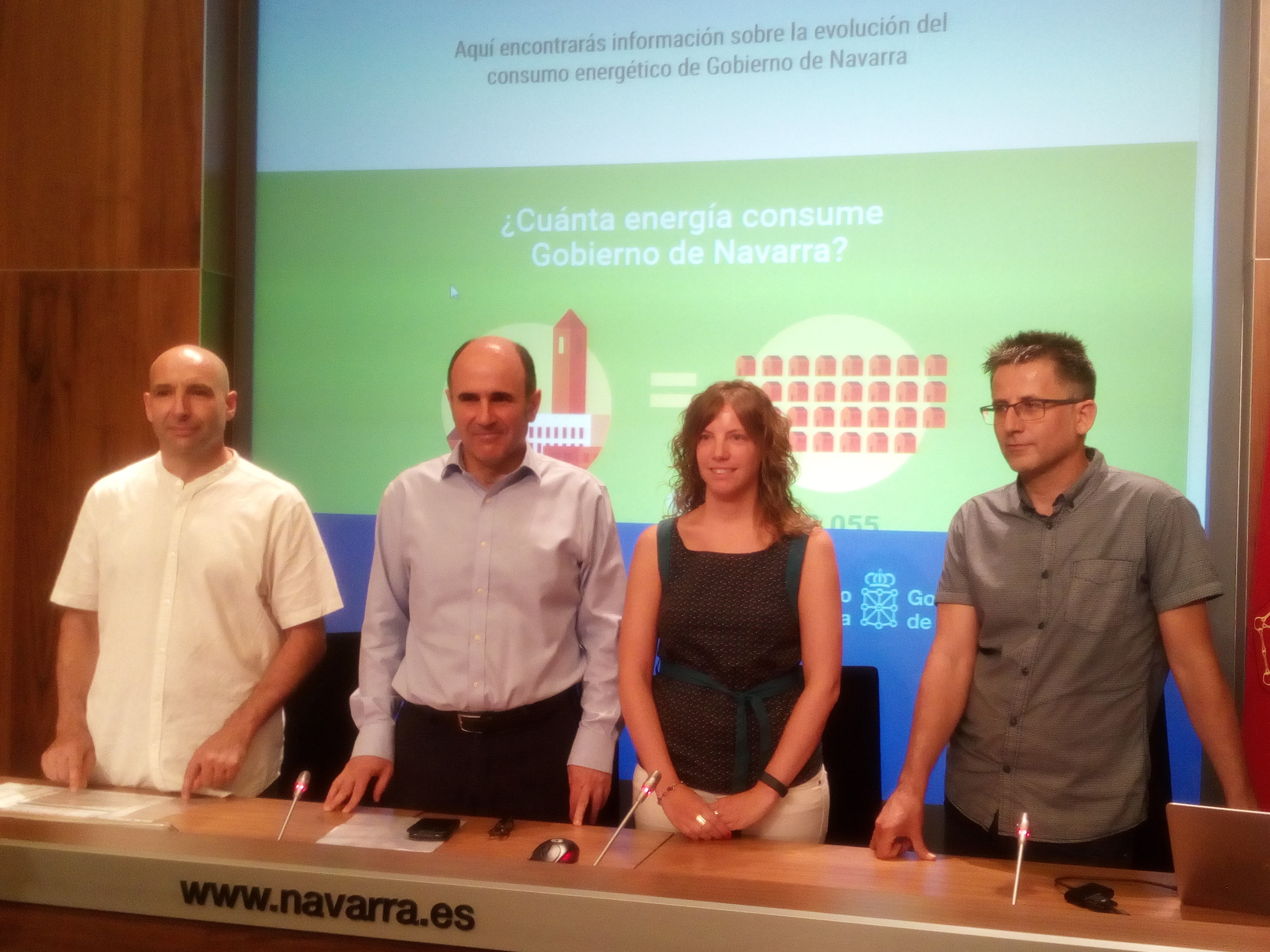 En la presentación de este Portal Energético, que convierte a Navarra en la primera comunidad autónoma en implantar una aplicación de estas características, han acompañado al vicepresidente Ayerdi el jefe de sección del Plan Energético de Navarra, Martin Ibarra; la técnica de la sociedad pública Nasuvinsa, encargada de implementar la herramienta, Yael Lorea; y el gerente de la patente InerGy, David Pon.