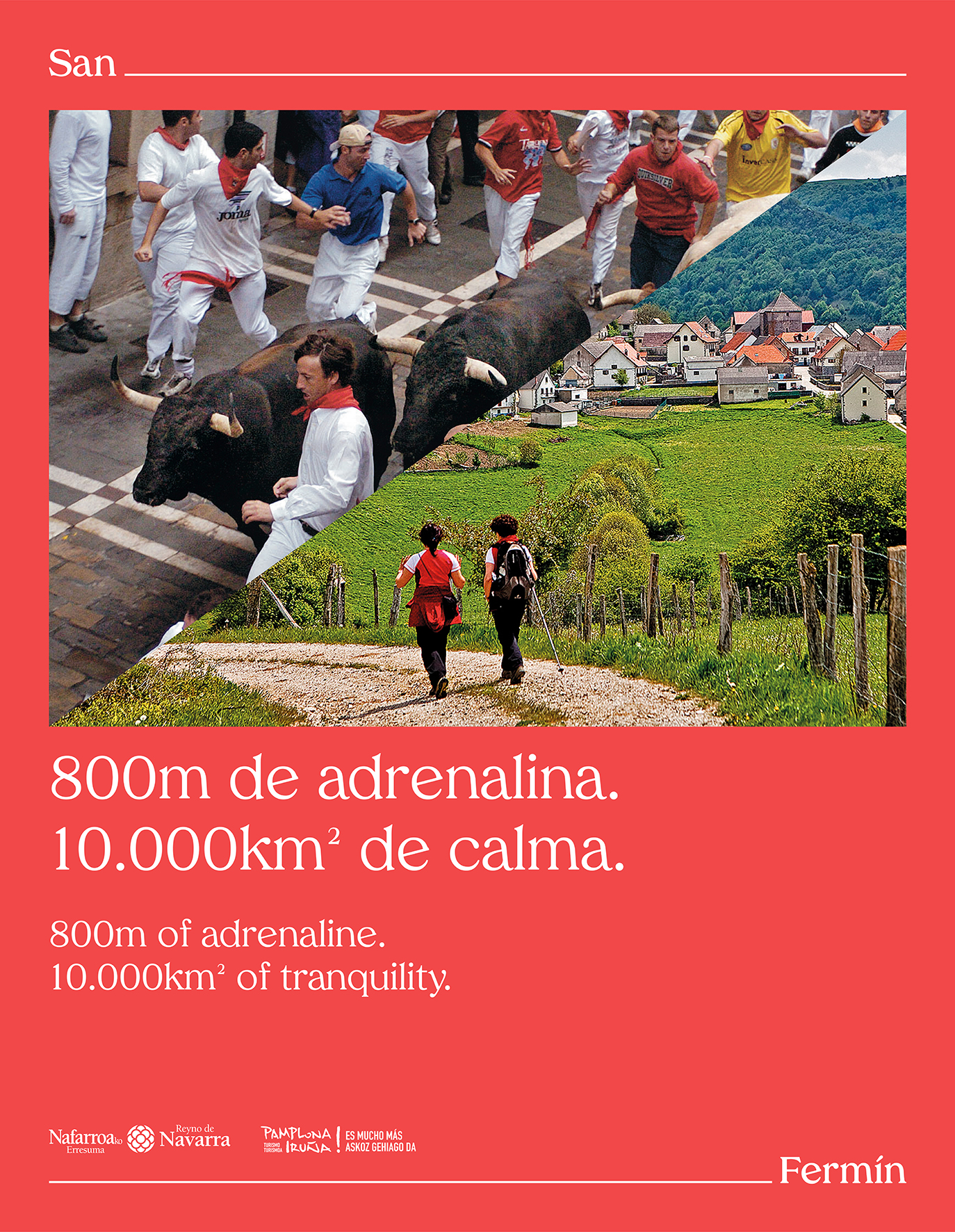 El objetivo es transmitir la gran oportunidad que supone visitar Navarra durante las Fiestas de San Fermín ya que es una ocasión única de simultanear emociones tan diferentes como la fiesta y la calma, la ciudad y lo rural, la tradición y la innovación.