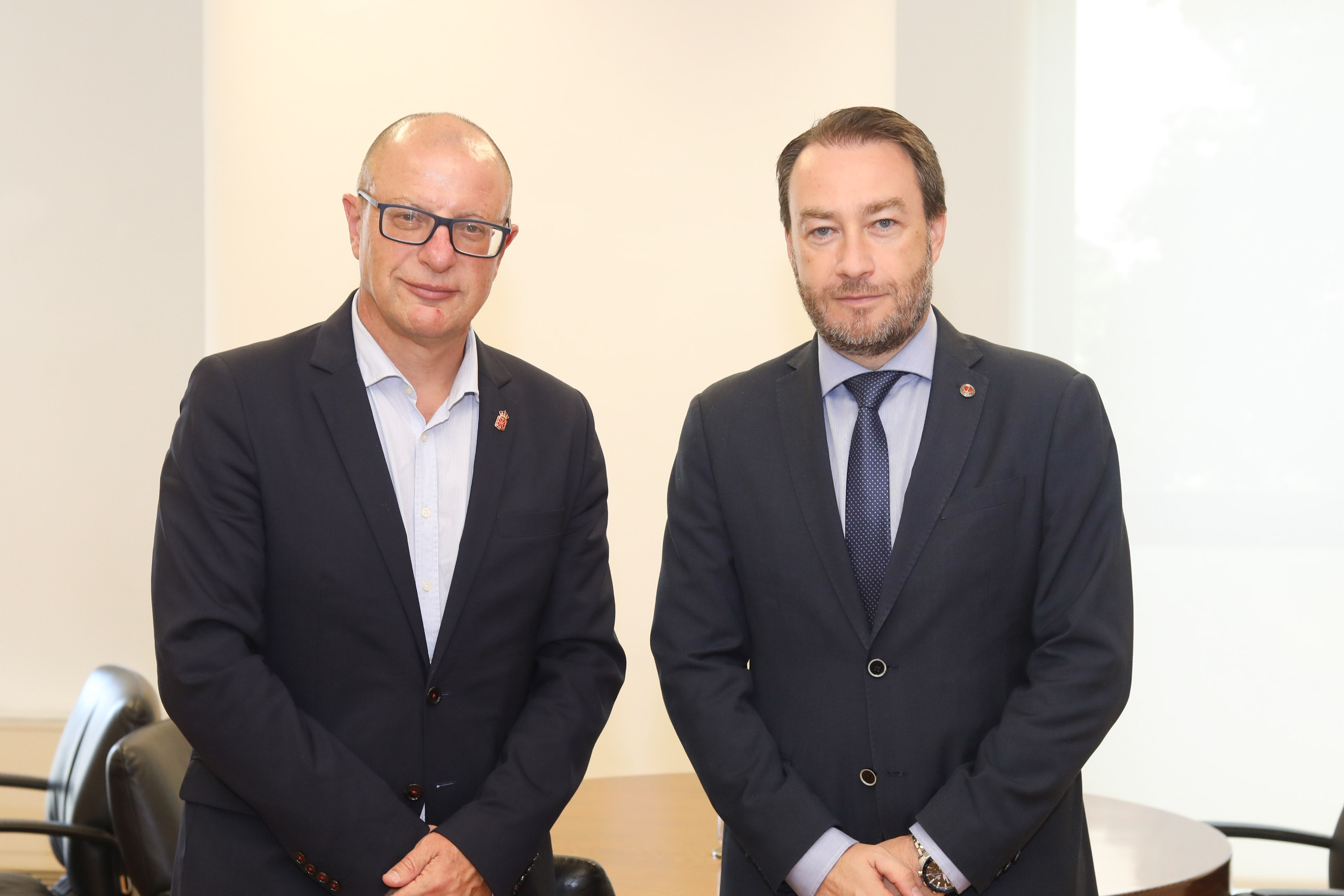 El consejero de Educación del Gobierno de Navarra, Carlos Gimeno, se ha reunido hoy con el rector de la Universidad Pública de Navarra (UPNA), Ramón Gonzalo, en un encuentro que ha servido para intercambiar aspectos relacionados con la política educativa del Departamento y la actividad y proyectos de la Universidad Pública, en un momento en el que este ámbito, el universitario, se ha constituido como un departamento propio del Ejecutivo, en el que se integra asimismo la Innovación y la Transformación Digital.