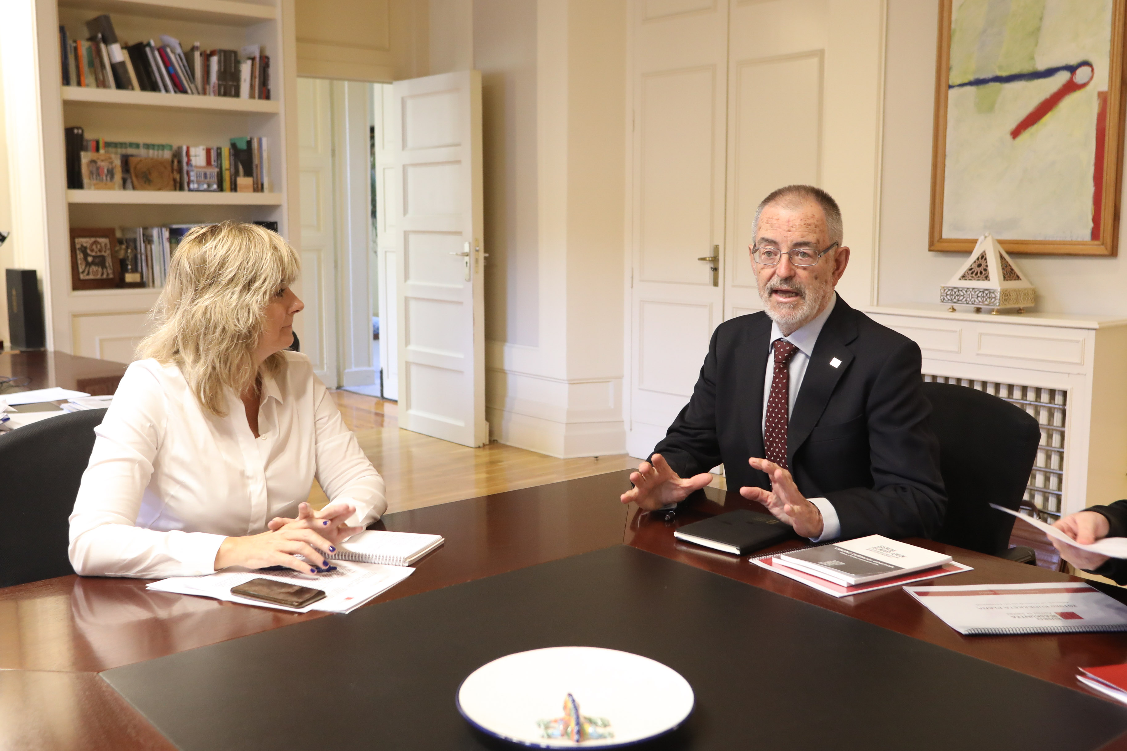 La consejera de Relaciones Ciudadanas, Ana Ollo, y el presidente de Eusko Ikaskuntza, Iñaki Dorronsoro, han mantenido esta mañana un encuentro para explorar nuevas líneas de colaboración transversales entre esta entidad y el Gobierno de Navarra. En este ámbito los responsables de la entidad han presentado las líneas de trabajo que tienen previsto desarrollar tras las conclusiones obtenidas en el congreso que celebró el centenario de Eusko Ikaskuntza.