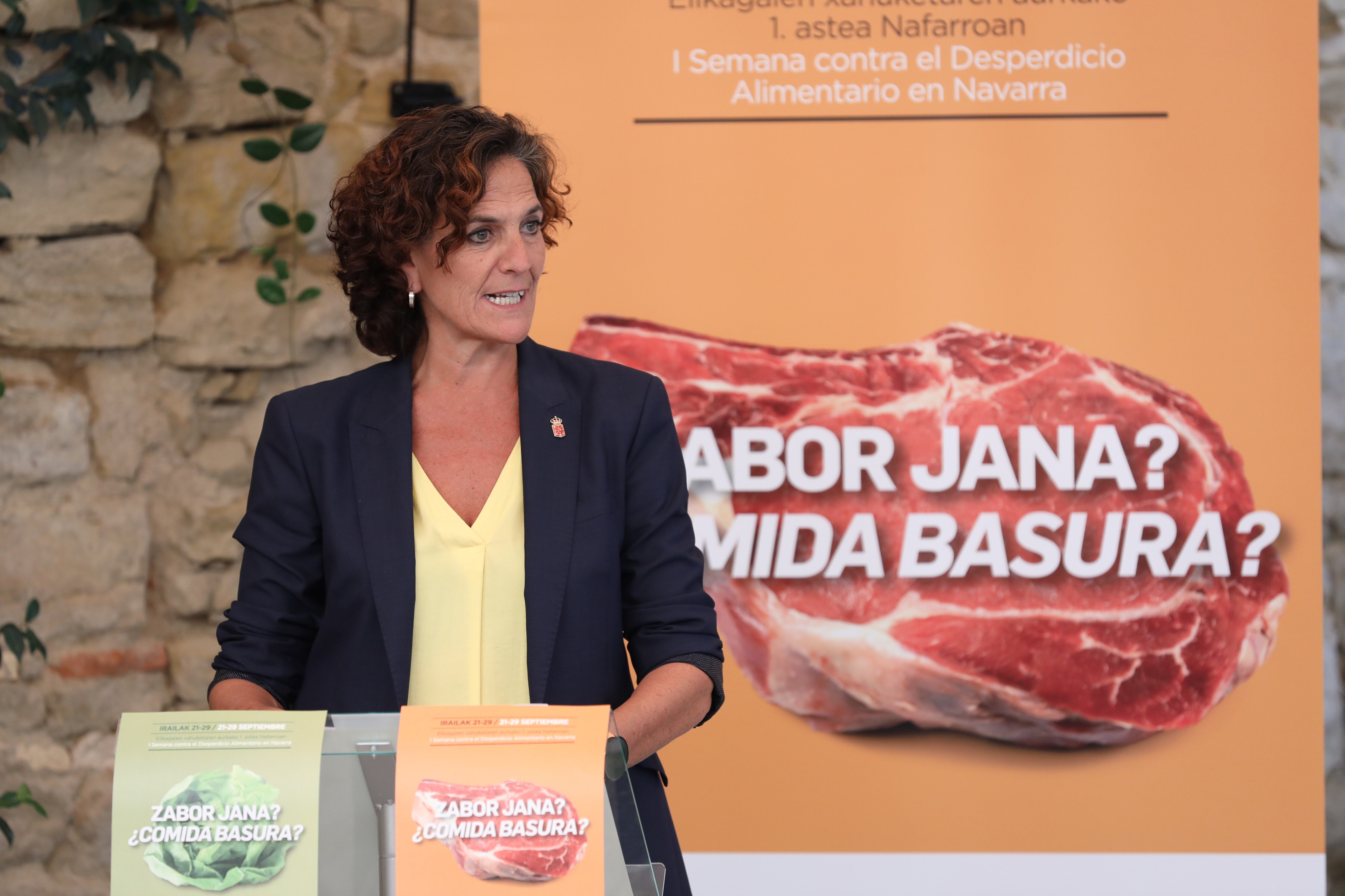 La consejera de Desarrollo Rural y Medio Ambiente del Gobierno de Navarra, Itziar Gómez, y el director general de Administración Local y Despoblación, Jesús Mari Rodríguez, han asistido este martes en Puente la Reina / Gares a la presentación de la iniciativa “Que reaproveche / Birron egin” para impulsar el aprovechamiento alimentario en bares, restaurantes y locales de ocio de la Comunidad foral.