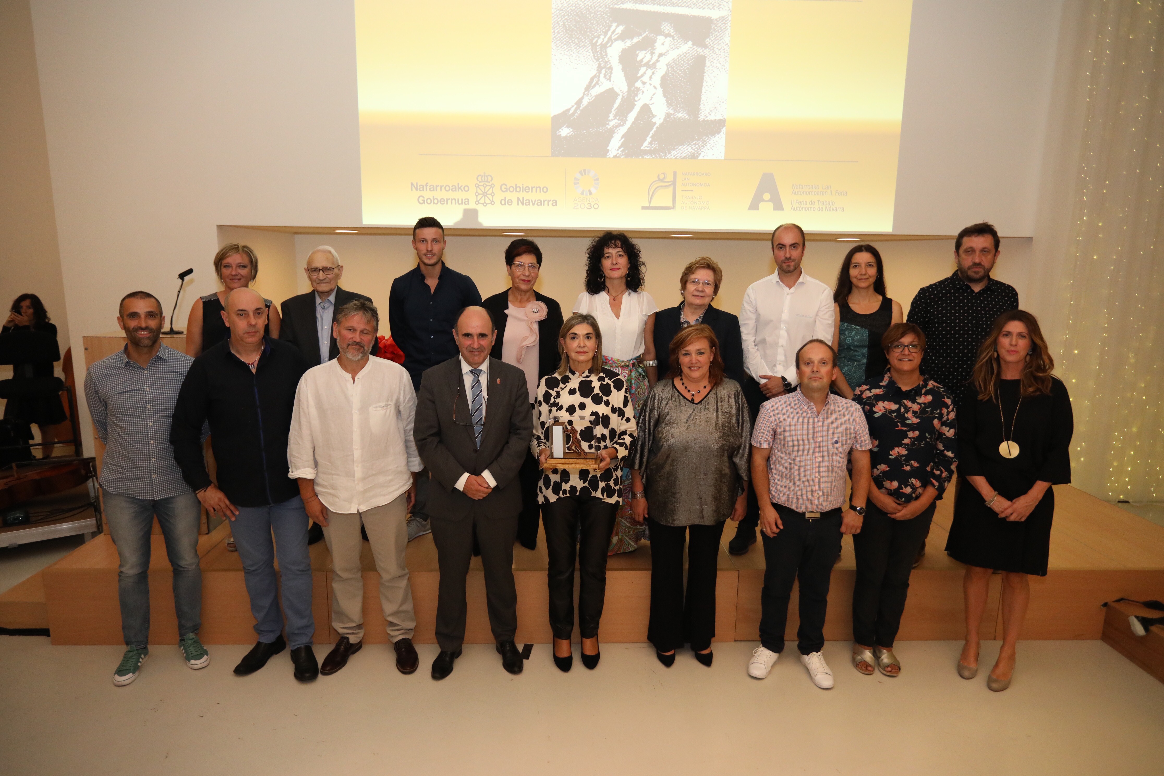 Las personas galardonadas y seleccionadas por el Consejo Navarro del Trabajo Autónomo por su labor profesional, las buenas prácticas que han puesto en marcha, la internacionalización de su negocio o el impacto social del trabajo han sido: Juan Karlos Pulido, Maria Luisa Zufiaurre, Diego Arpide, Cristina García, Iker Ibero, Santiago Cordon, Ernesto Bravo, Jaione Elizalde, Pilar Ramirez, Guillermo Garde, Jesús Zapata, Margarita Muguiro, Beatriz Zazpe, María José Moriones, Tina Asensio y Jesús Manuel Puerta. Además, María Eugenia Echarren ha sido reconocida con una mención especial por su trayectoria profesional.