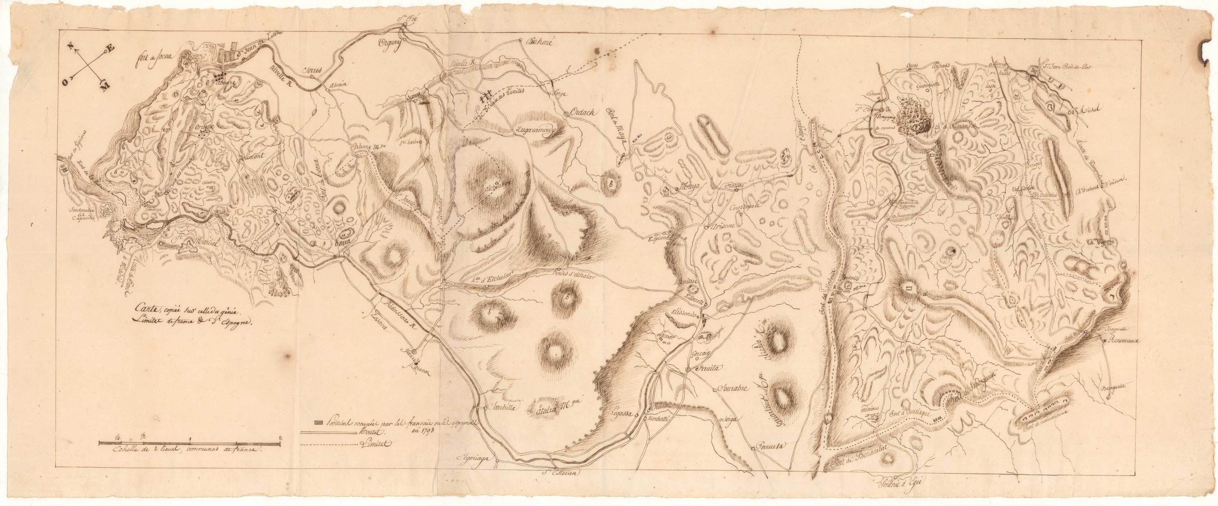 Durante el primer año del conflicto, España logró completar con éxito algunas acciones en territorio francés, como la destrucción de Hendaya o la ocupación de Sara y Alduides realizada por el general Ventura Caro, al mando de las fuerzas del ejército en Navarra y Guipúzcoa. Un excepcional mapa manuscrito incluido en la microexposición reproduce las posiciones del ejército francés en la frontera entre Hendaya y Chateau-Pignon y da cuenta de estos movimientos.
