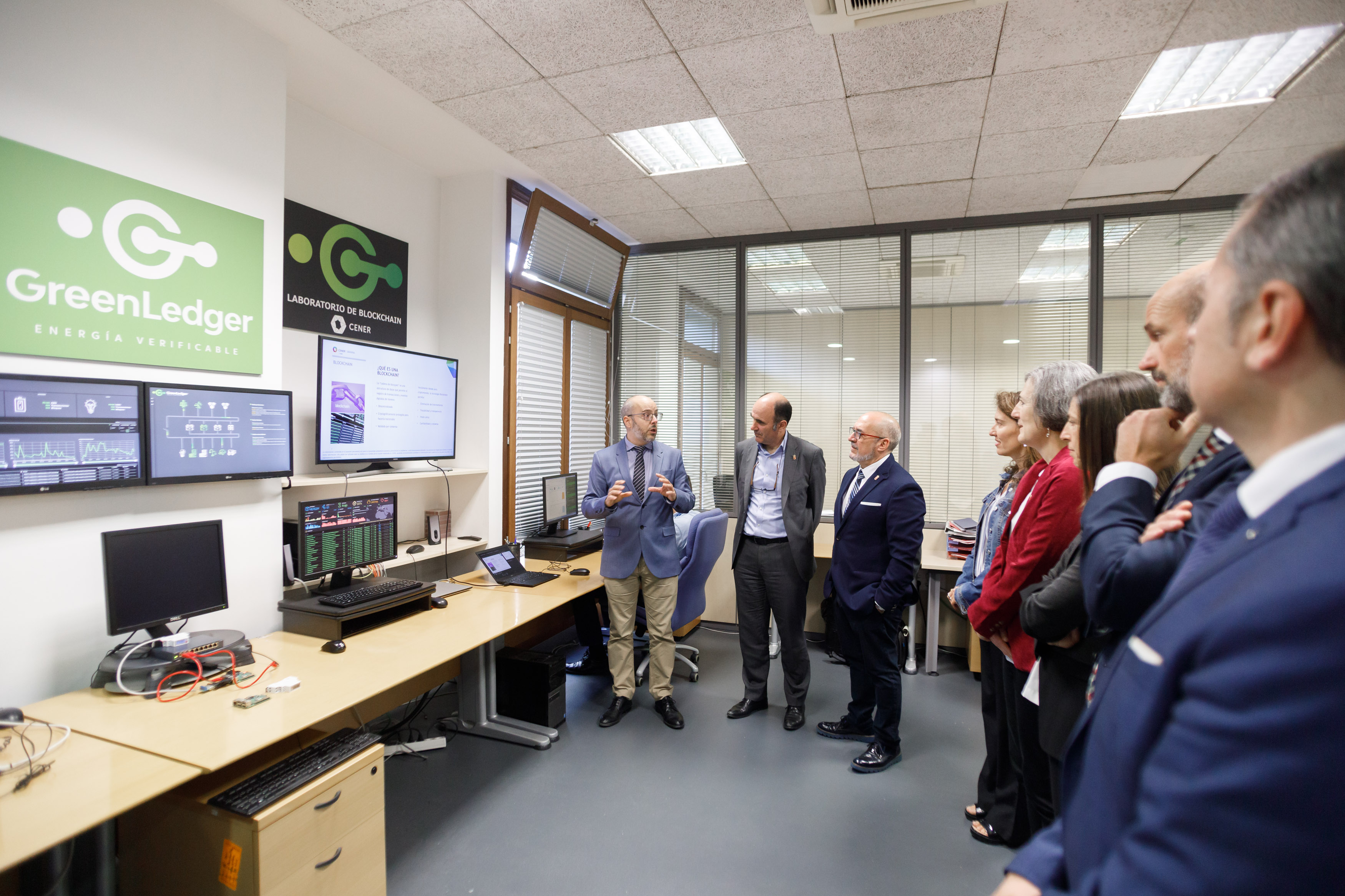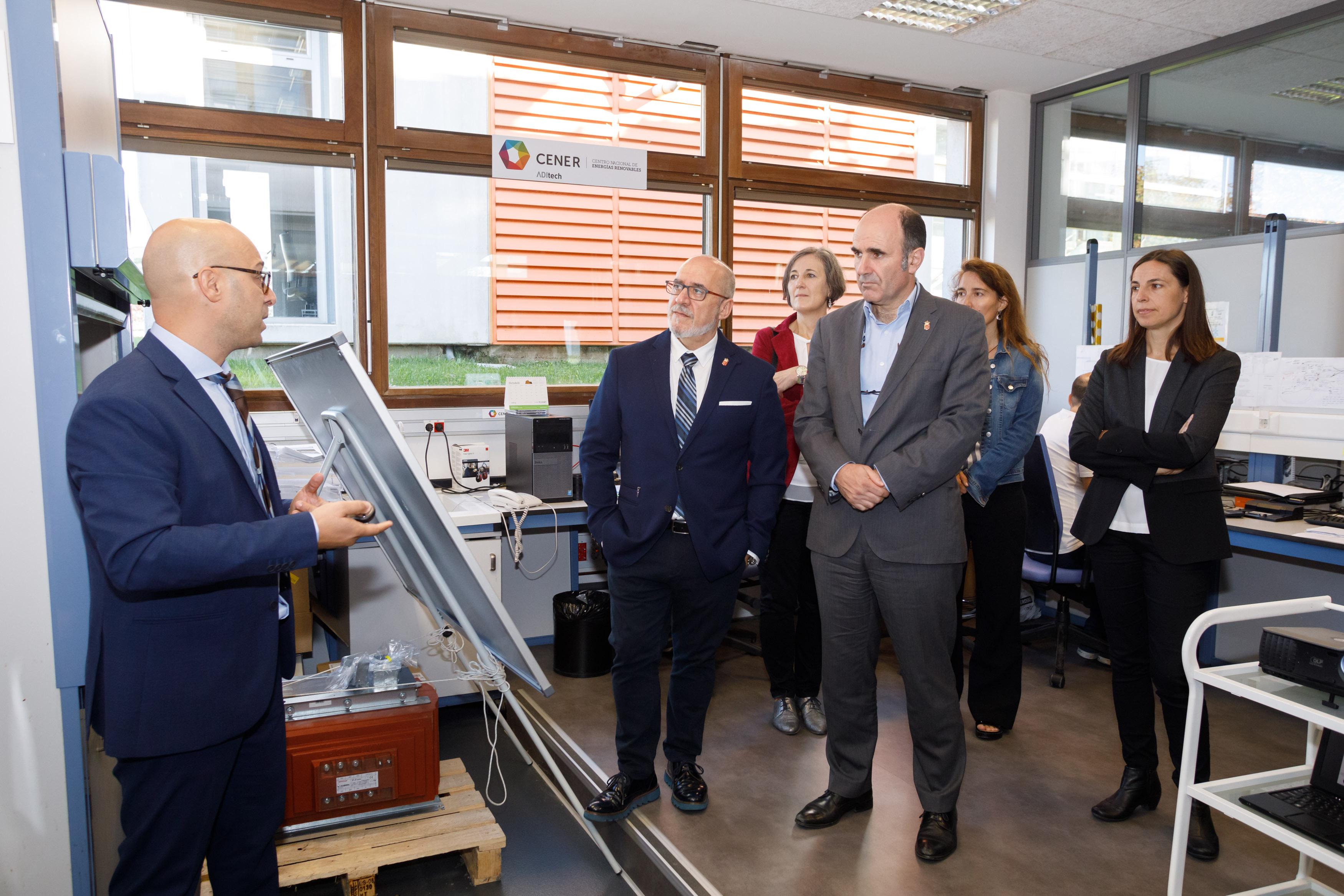 Posteriormente, la comitiva institucional ha visitado algunas de las oficinas y laboratorios allí ubicados, como es el caso del recientemente creado Blockchain, en el que se desarrollan proyectos de aplicación de esta novedosa tecnología, el de caracterización de captadores solares térmicos, el de materiales y células fotovoltaicas y el Laboratorio de Electrónica de Potencia y Redes Inteligentes. “CENER es un centro de referencia en materia de energías, un pilar del ecosistema navarro de renovables”, ha explicado Manu Ayerdi. Además, ha añadido que, “está llamado a jugar un papel muy destacado en la imprescindible transición energética, un imperativo ético, y a la vez una oportunidad extraordinaria para Navarra. Es indispensable trabajar de la mano del Departamento de Universidad, Innovación y Transformación Digital”.