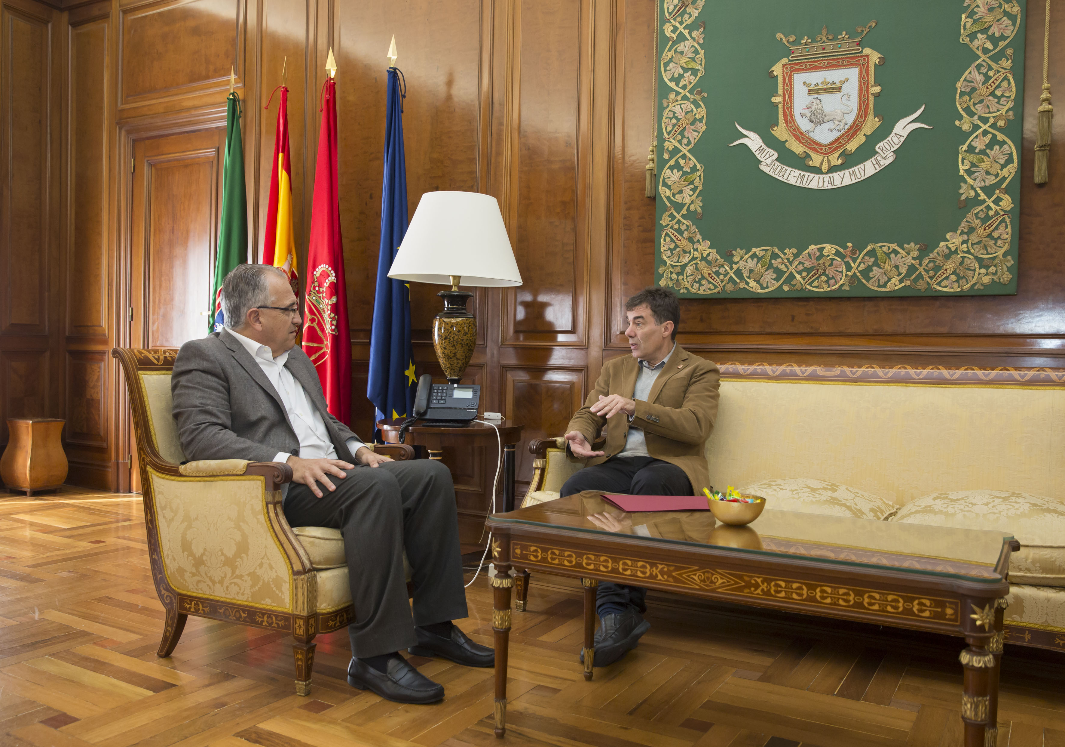 Esa posible ampliación del edificio de Justicia y su adecuación a las necesidades de espacio que tienen actualmente los empleados de la Administración de Justicia en Pamplona, ha centrado el encuentro que han mantenido en el Ayuntamiento de la capital el consejero de Políticas Migratorias y Justicia, Eduardo Santos, y el alcalde de Pamplona, Enrique Maya.