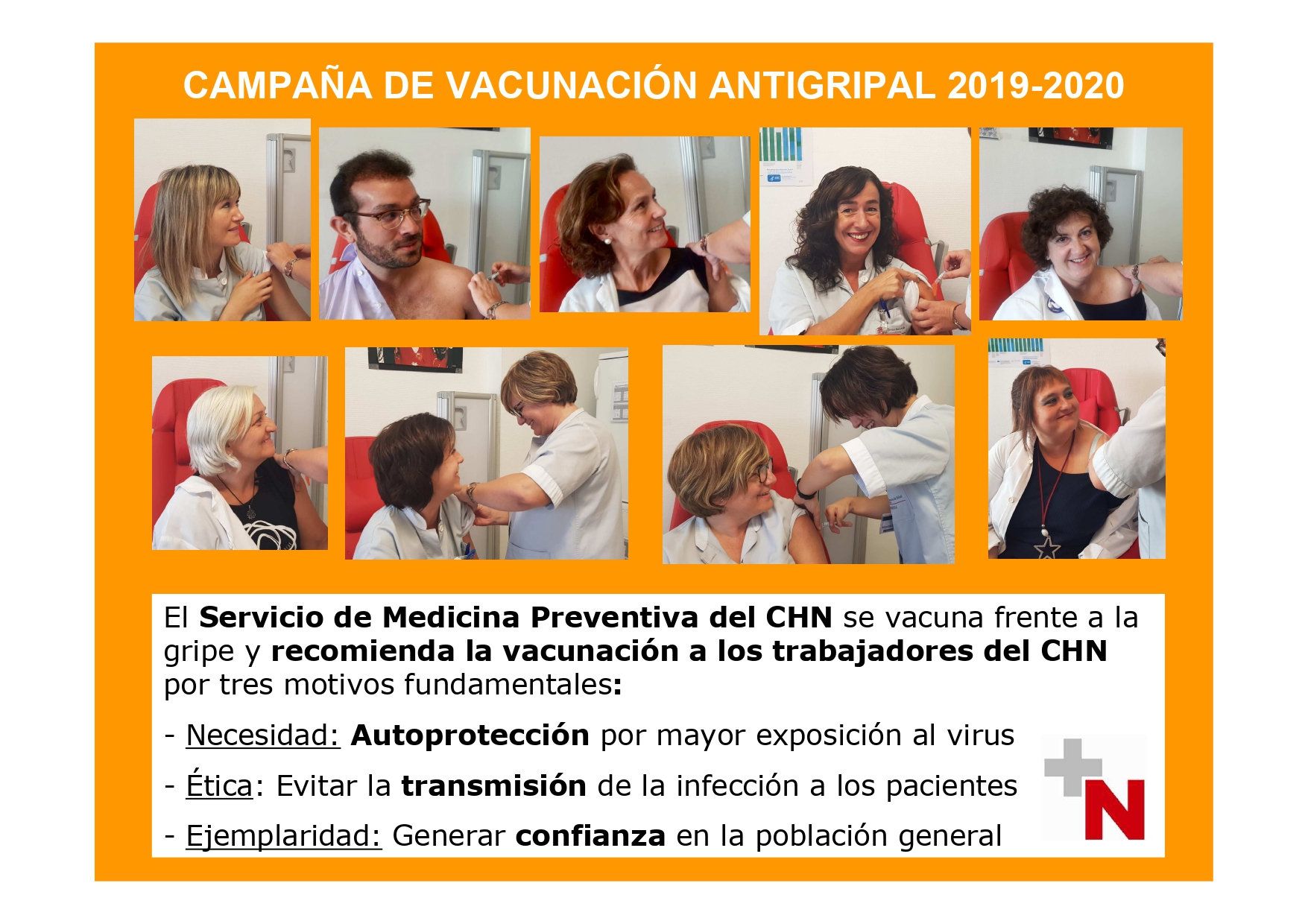 Todos los años, durante la campaña de vacunación antigripal, el Servicio de Medicina Preventiva y el Servicio de Prevención de Riesgos Laborales ofertan la vacunación a todos los trabajadores del CHN mediante un punto fijo de vacunación en cada uno de los servicios y, también, desplazándose diariamente a todos los servicios o unidades del centro para facilitar su realización.