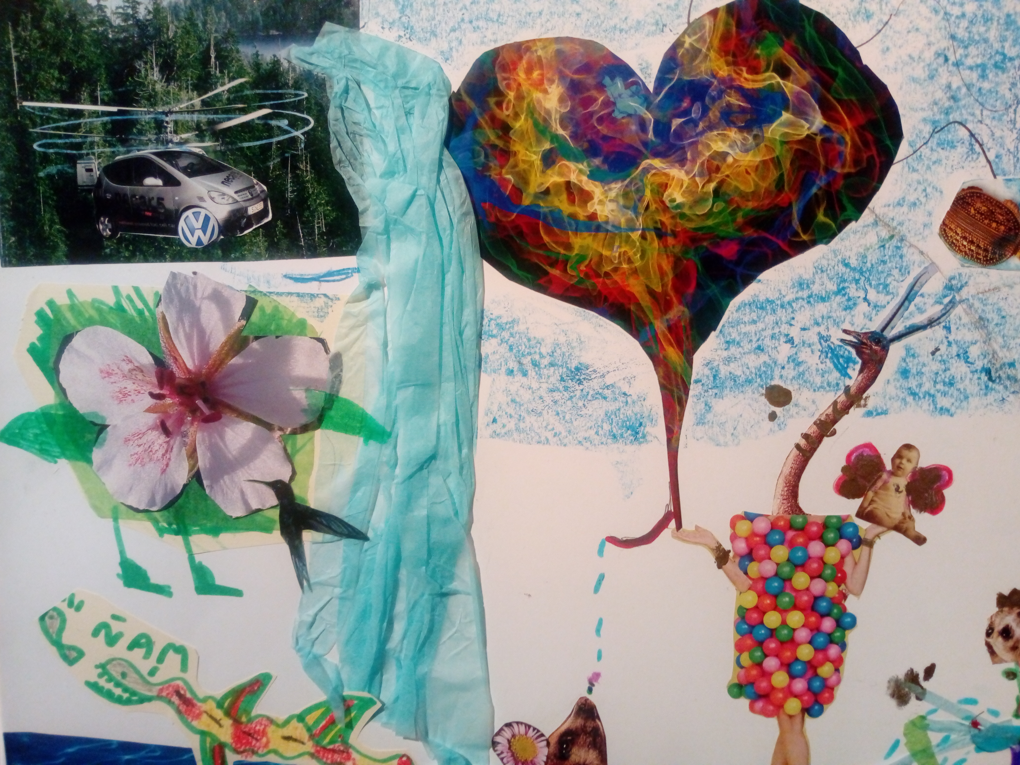 La visita se completaba con un taller plástico en el que, utilizando diferentes tipos de pintura y la técnica del collage, se recreaba una escena con los mismos elementos del cuadro: un espacio interior, un paisaje, un artista y un ser mitológico.