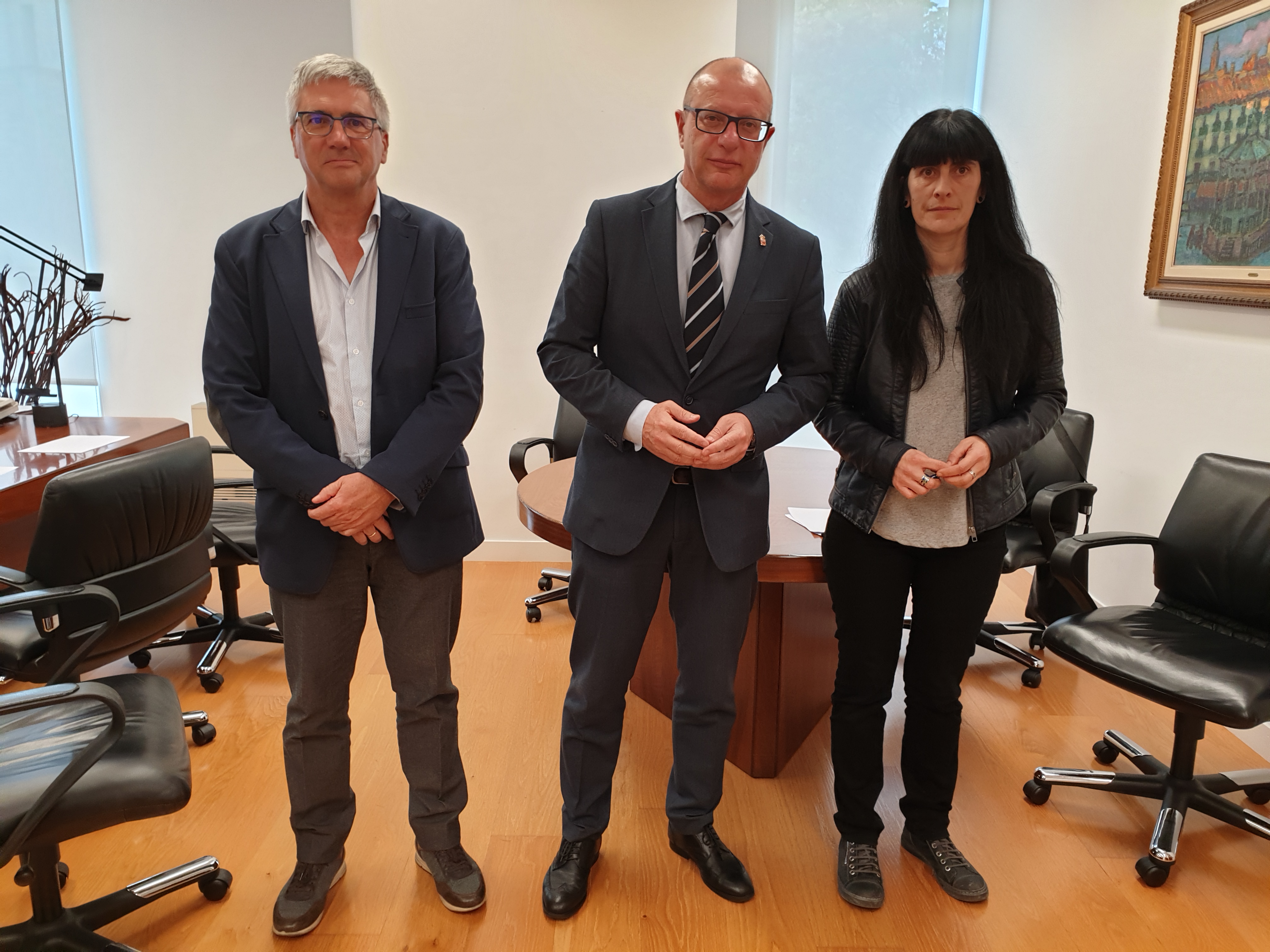 El director general Gil Sevillano, el consejero Gimeno y Alizia Iribarren coordinadora de AEK.   Descargar imagen Ver galería de imágenes