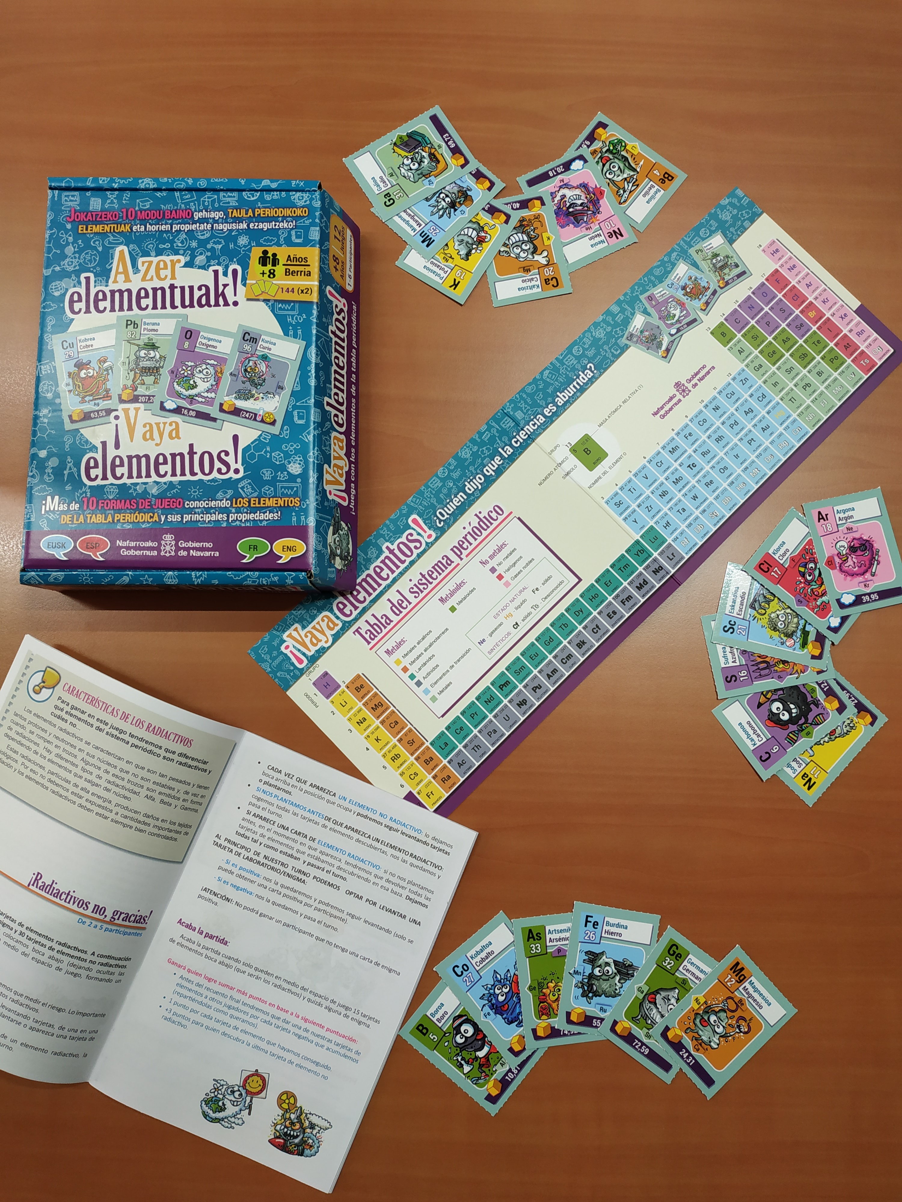 El Departamento de Desarrollo Económico y Empresarial del Gobierno de Navarra ha creado el juego ¡Vaya Elementos¡ basado en la tabla periódica y que servirá de apoyo a la hora de estudiar la materia. El juego se podrá adquirir en la feria del disco y libro de Durango que tendrá lugar desde el jueves 5 hasta el domingo 8 de diciembre, así como en la tienda de publicaciones del Gobierno foral.