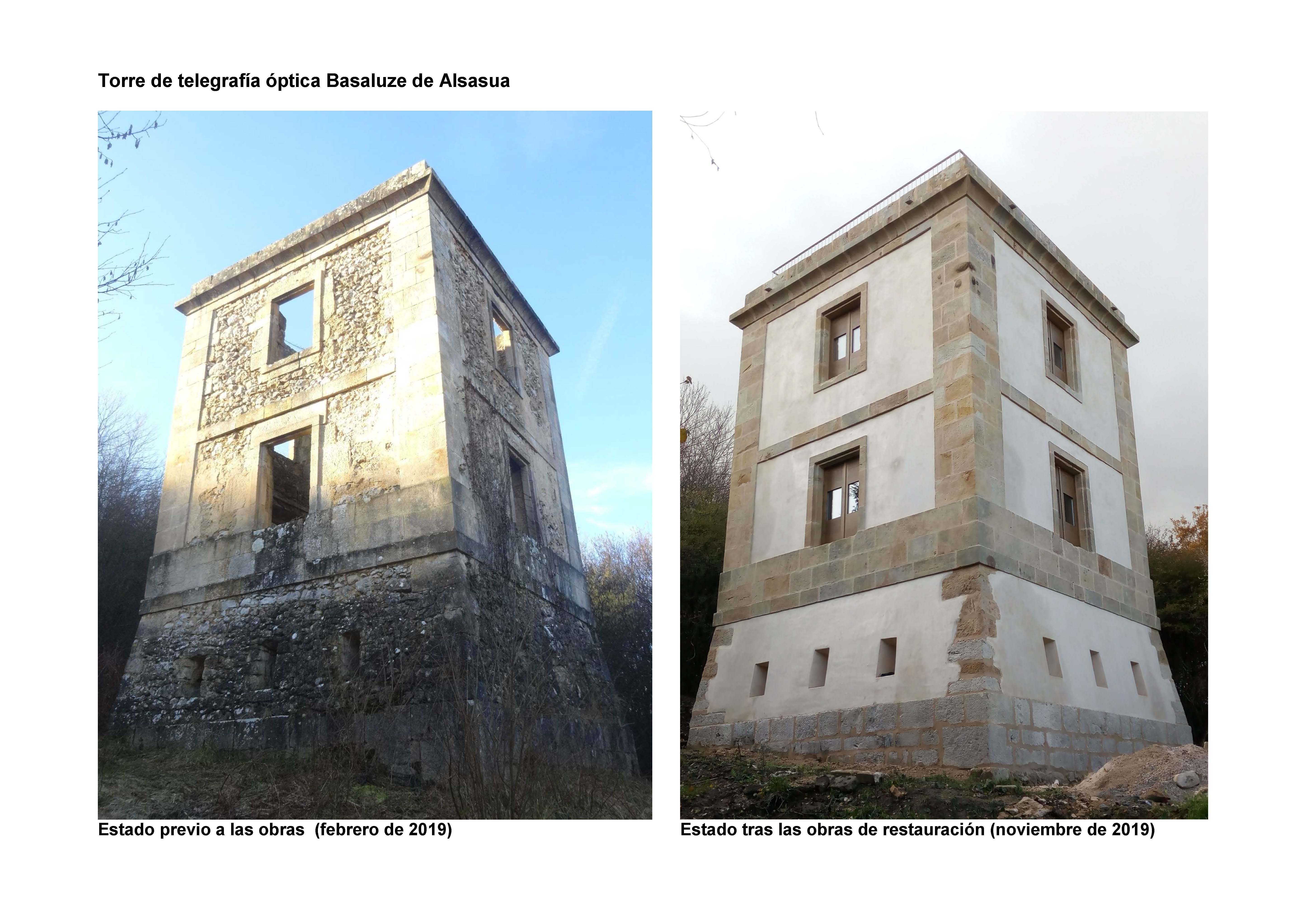 Han finalizado las obras de restauración de la torre de telegrafía óptica Basaluze de Alsasua / Altsasu, promovidas y financiadas por la Dirección General de Cultura. La obra ha supuesto una inversión de 250.527,53 euros.