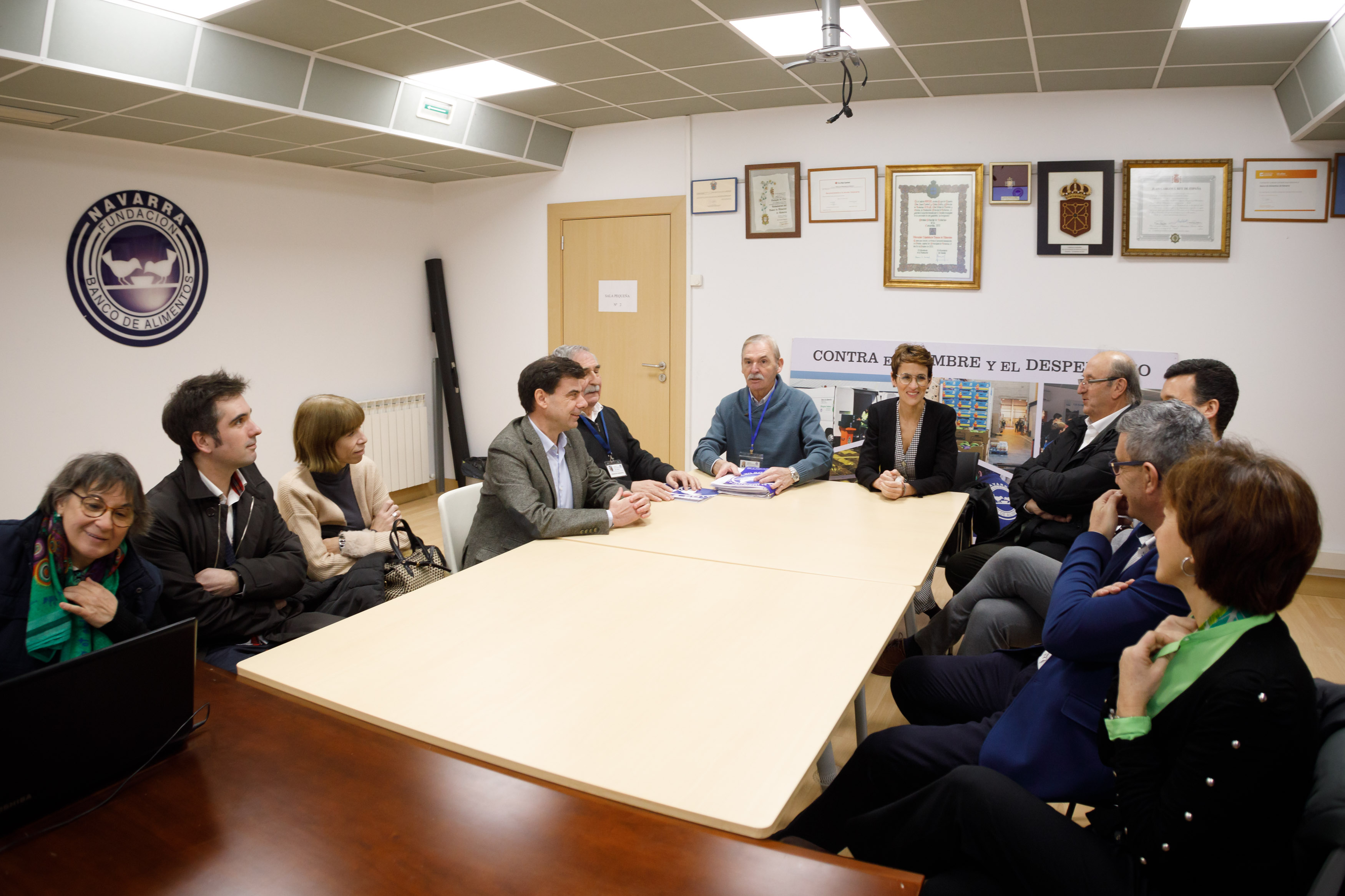 Han acompañado al presidente del BAN durante la visita, Ramón Navarro Andueza, vicepresidente; María José Vargas; Marisol Villar, voluntaria coordinadora de las grandes recogidas y de colectas de alimentos, y miembro del patronato de la Fundación del BAN; Ignacio Ugalde, miembro del patronato y presidente de ANEL; Agustín Guibert, Eugenio Arraiza y José Ignacio Calleja, miembros del patronato; Sandra Alfaro, voluntaria de sensibilización y miembro del patronato; José Miguel Pérez y Santi Garcés, voluntarios miembros del equipo de gestión, y Gema Santamaría, responsable de comunicación.
