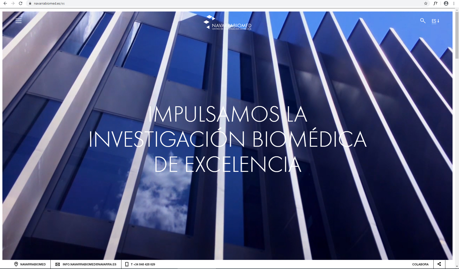Navarrabiomed, centro de investigación biomédica mixto del Gobierno de Navarra y de la Universidad Pública de Navarra, ha publicado este miércoles su nueva página web corporativa www.navarrabiomed.es. El sitio web se presenta en tres idiomas (castellano, euskera e inglés) y apuesta por mostrar la actividad del centro a través de material gráfico y audiovisual propio, creado íntegramente en la Unidad de Comunicación y Diseño de Navarrabiomed.