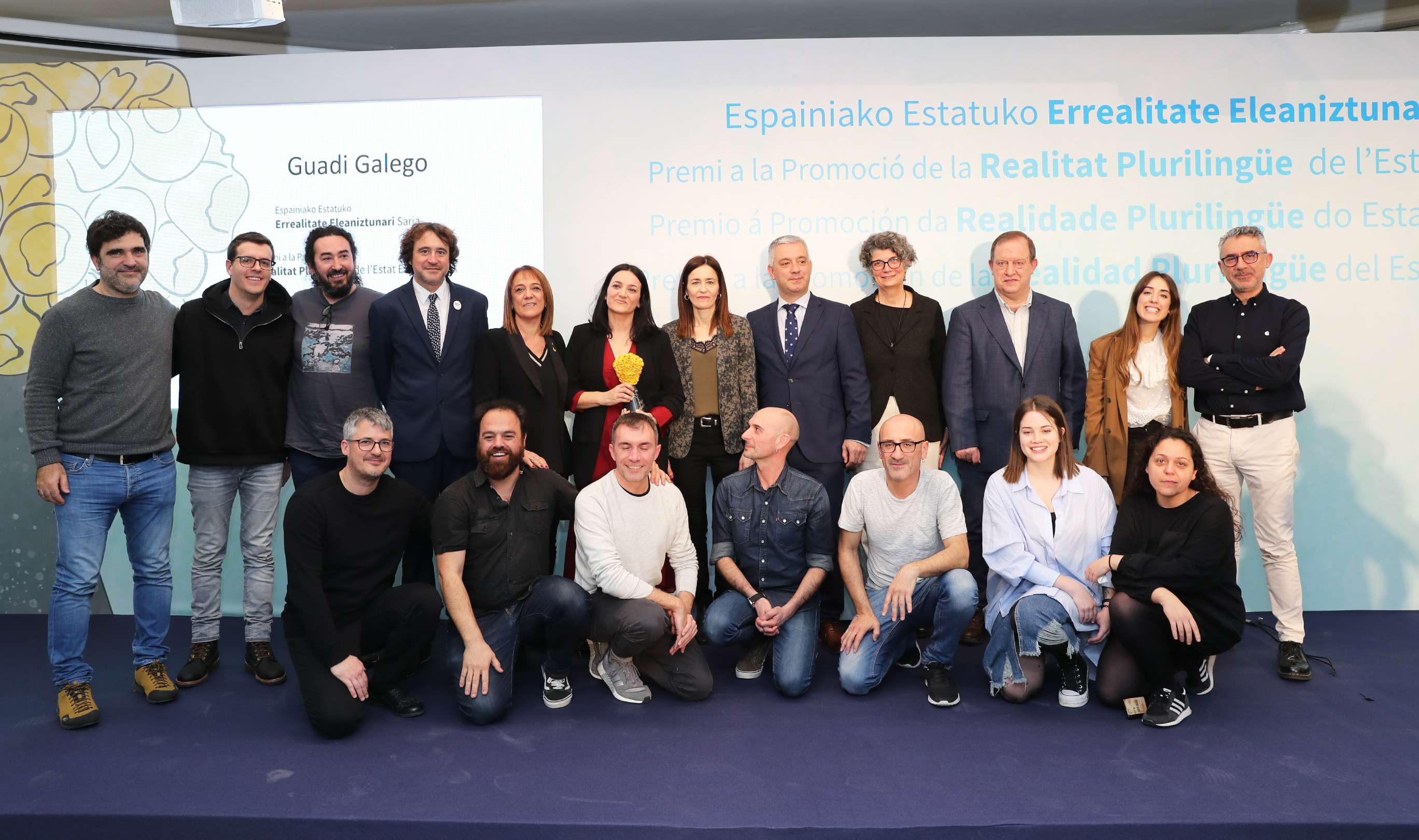 La artista gallega Guadi Galego ha recibido esta mañana, en el Círculo de Bellas Artes de Madrid, el Premio a la Promoción de la Realidad Plurilingüe del Estado Español, concedido por los gobiernos autonómicos de Navarra, Euskadi, Cataluña, Galicia, Valencia e Islas Baleares, por su último trabajo Immersion, en el que recoge canciones y pone en valor siete lenguas peninsulares (gallego, euskera, catalán, aranés, asturiano, portugués y castellano) de la mano de colaboraciones de artistas de las diferentes comunidades.