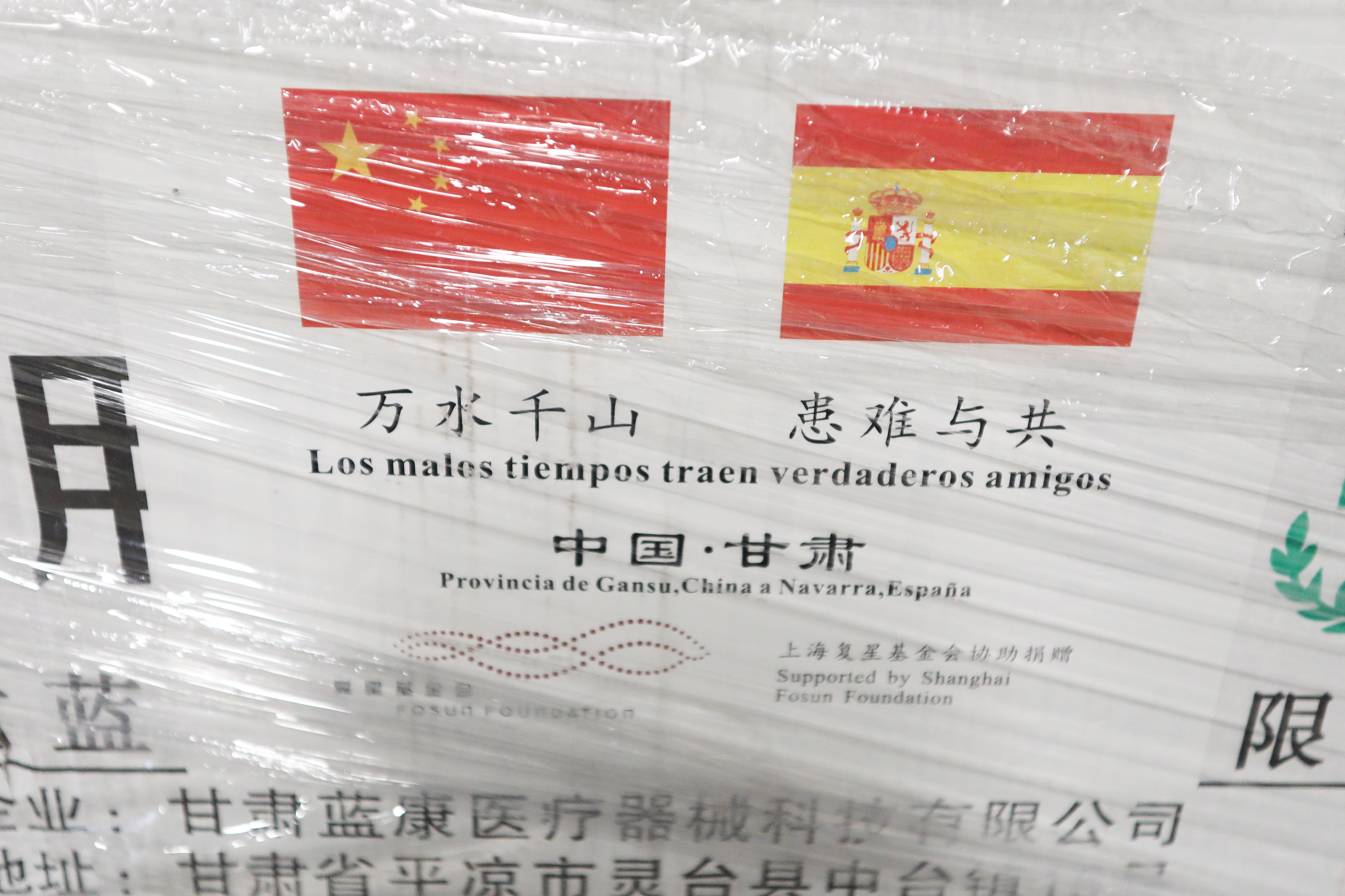 Navarra recibe 51.000 unidades de protección sanitaria donadas por la región china de Gansú