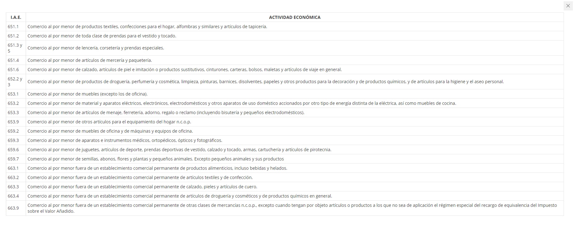 - Actividades incluidas en el régimen de estimación objetiva del IRPF a las que resulte de aplicación el régimen del recargo de equivalencia del IVA (se adjunta tabla)