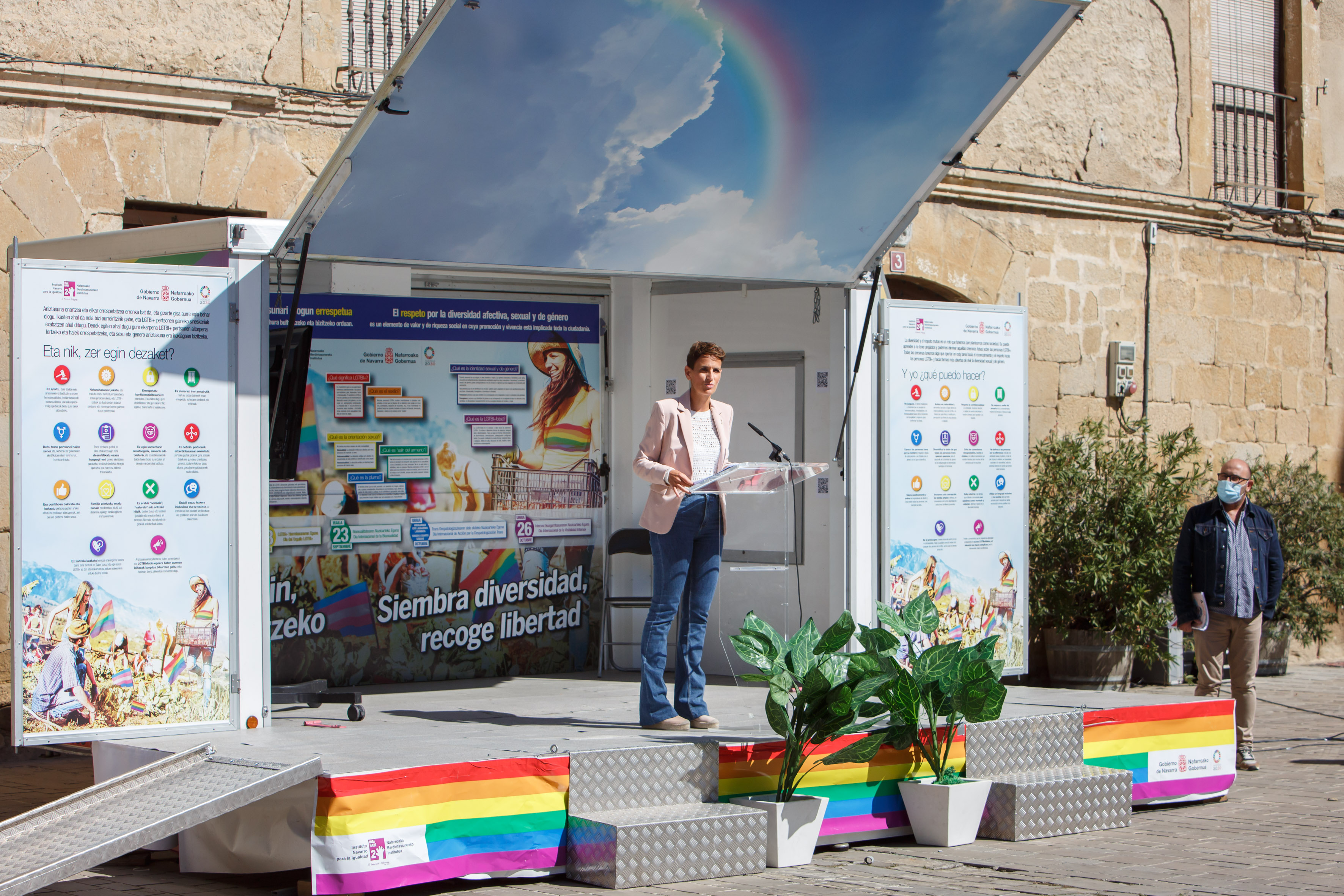 Así lo ha afirmado en la presentación del primer programa itinerante de sensibilización y visibilización creado por el Gobierno de Navarra, a través del Instituto Navarro para la Igualdad / Nafarroako Berdintasunerako Institutua (INAI/NABI), que se desarrollará durante el mes de septiembre, por medio de un vehículo que recorrerá 20 localidades de la Zona Media de la Comunidad Foral. Para el lanzamiento de este programa pionero se ha contado con la participación de las diferentes asociaciones de activismo LGTBI+ de cada zona de Navarra.